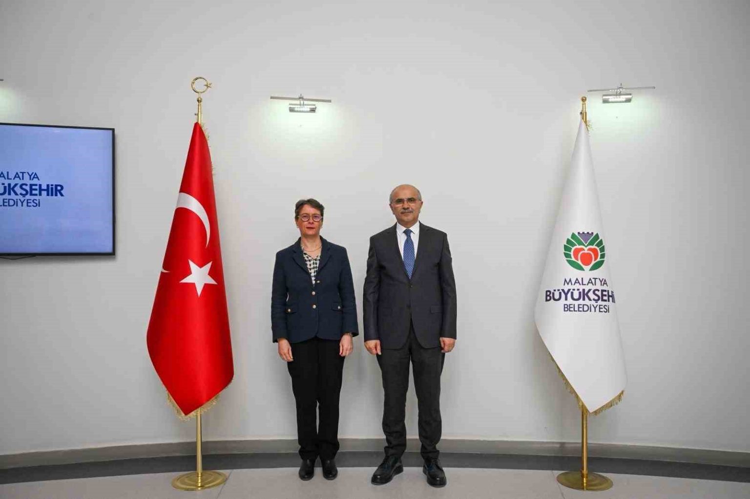 Fransa’nın Türkiye Büyükelçisi İsabelle Dumont, Fransız Kalkınma Ajansı Türkiye Müdürü Xavier Muron ve beraberindeki heyetle Malatya Büyükşehir Belediye Başkanı Sami Er’i ziyaret etti.