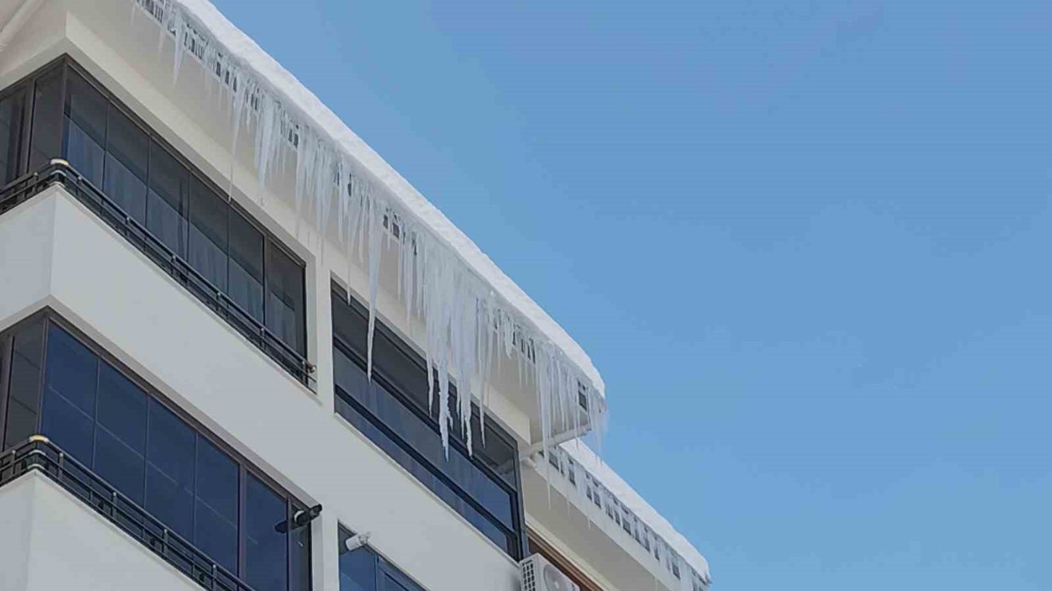 Çatılardan koparak düşme tehlikesi bulunan buz sarkıtlarına karşı vatandaşlar tedirginlik yaşarken, yetkililer özellikle yaya yoğunluğunun fazla olduğu bölgelerde dikkatli olunması konusunda uyarılarda bulundu.