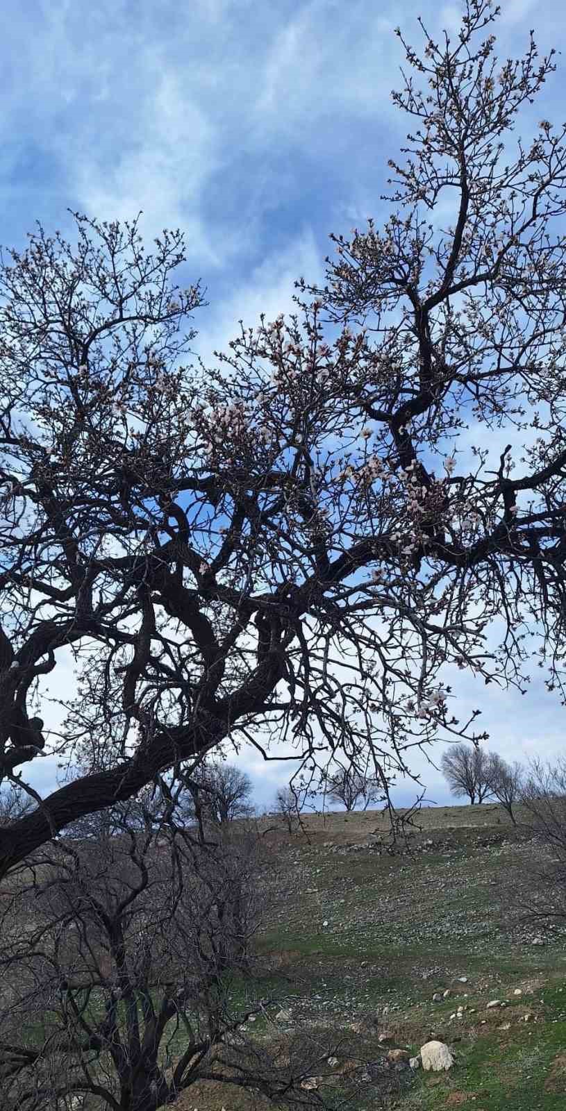 Ergani ilçesinde mevsim normallerinin üzerinde seyreden hava sıcaklıkları, doğayı vaktinden önce uyandırdı. Mart ayı sonunda açması beklenen badem ağaçları, şubat güneşine aldanarak beyaz ve pembe çiçeklerle bezendi.