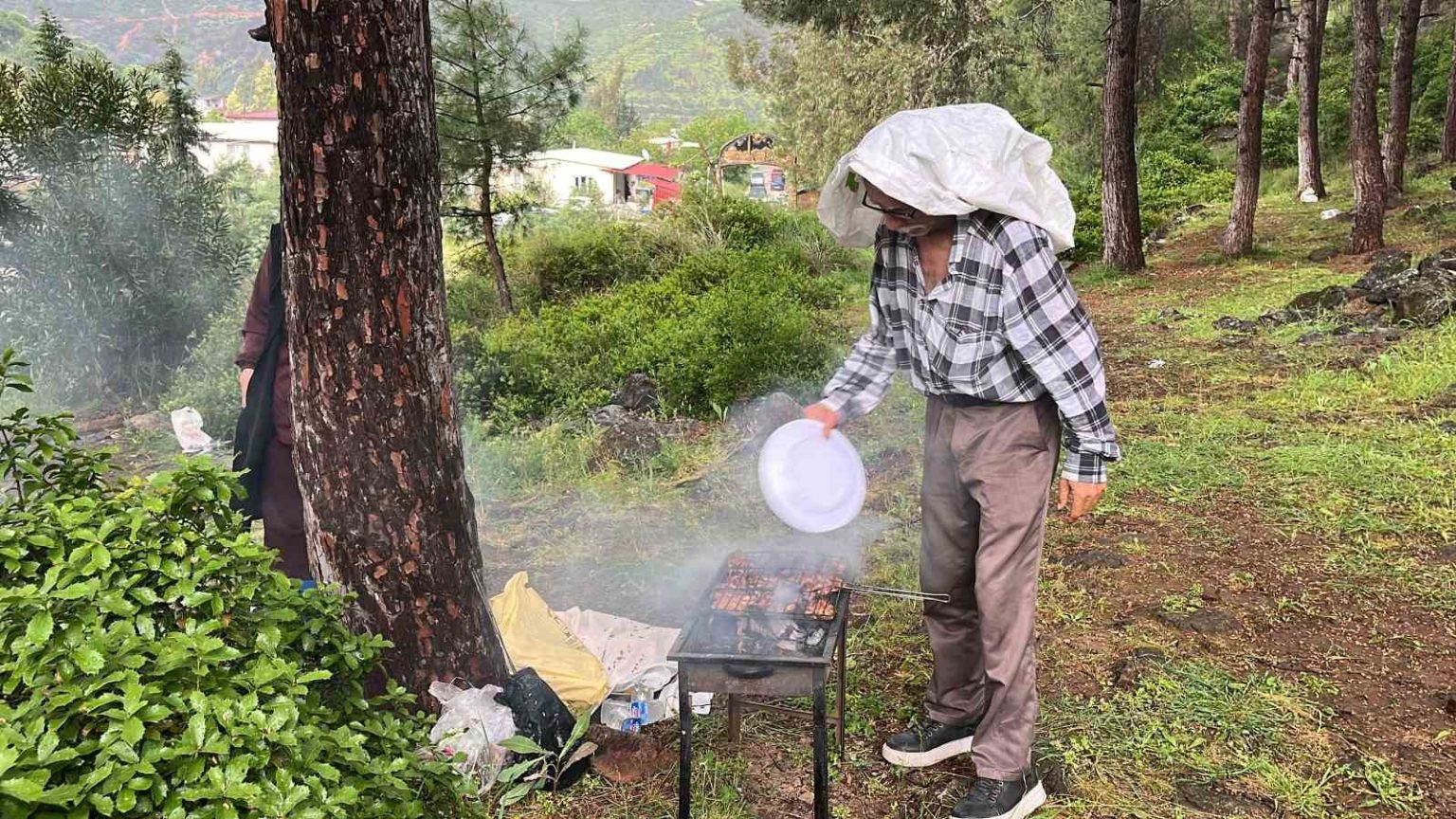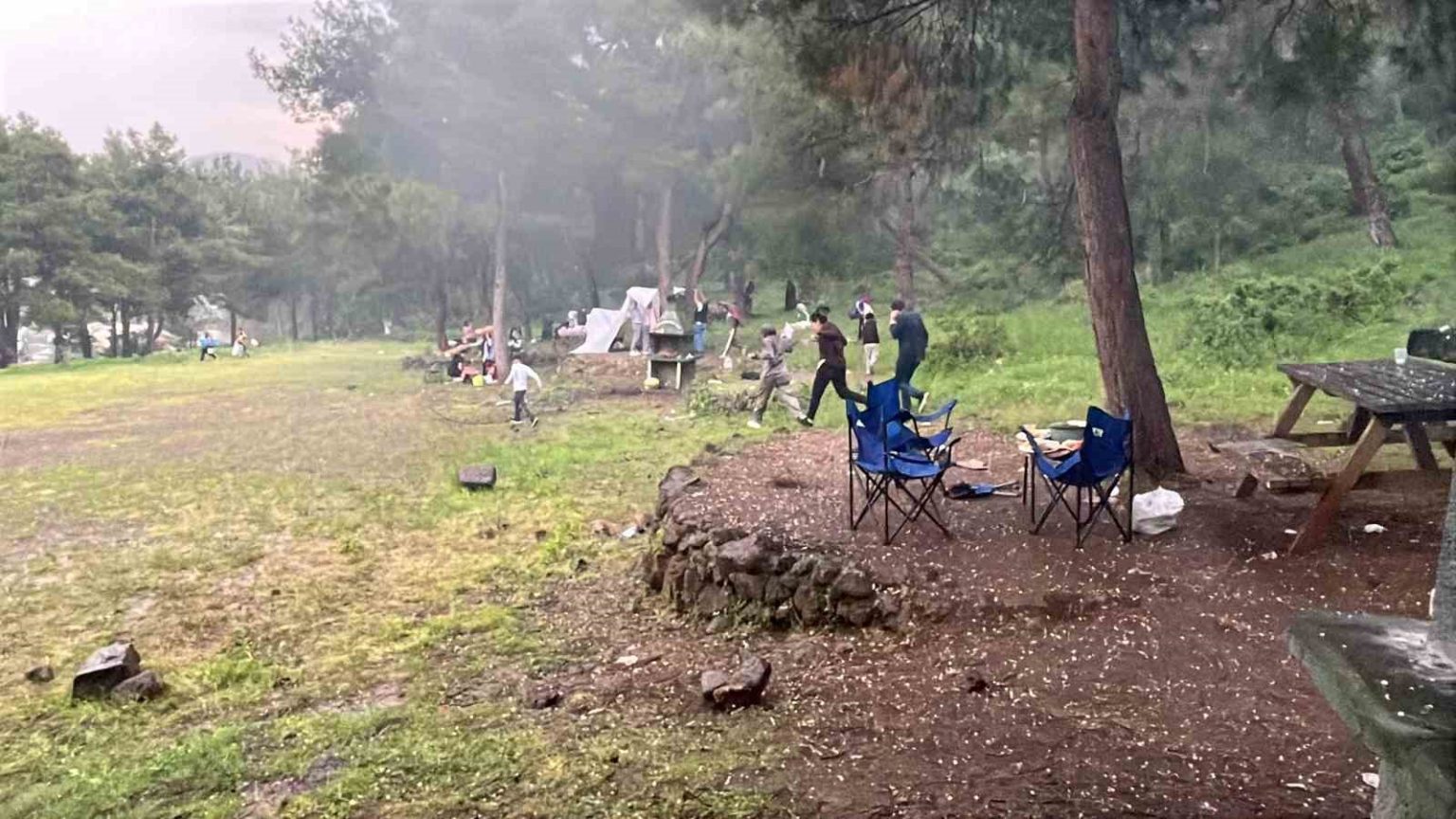 Yağışa rağmen mangal yemeden evine gitmeyeceğini söyleyen Savaş Yıldırım, “Yağış bir anda vurdu geçti. Herkes bıraktı gitti, ben mangalı yemeden gitmeyeceğim. Buraya kadar geldim, mangal yemeden gitmem. Dolular gülle büyüklüğündeydi, bereket yağıyor” dedi.