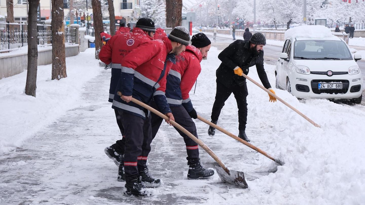 Erzincan kent merkezinde karla mücadele çalışmaları sürüyor