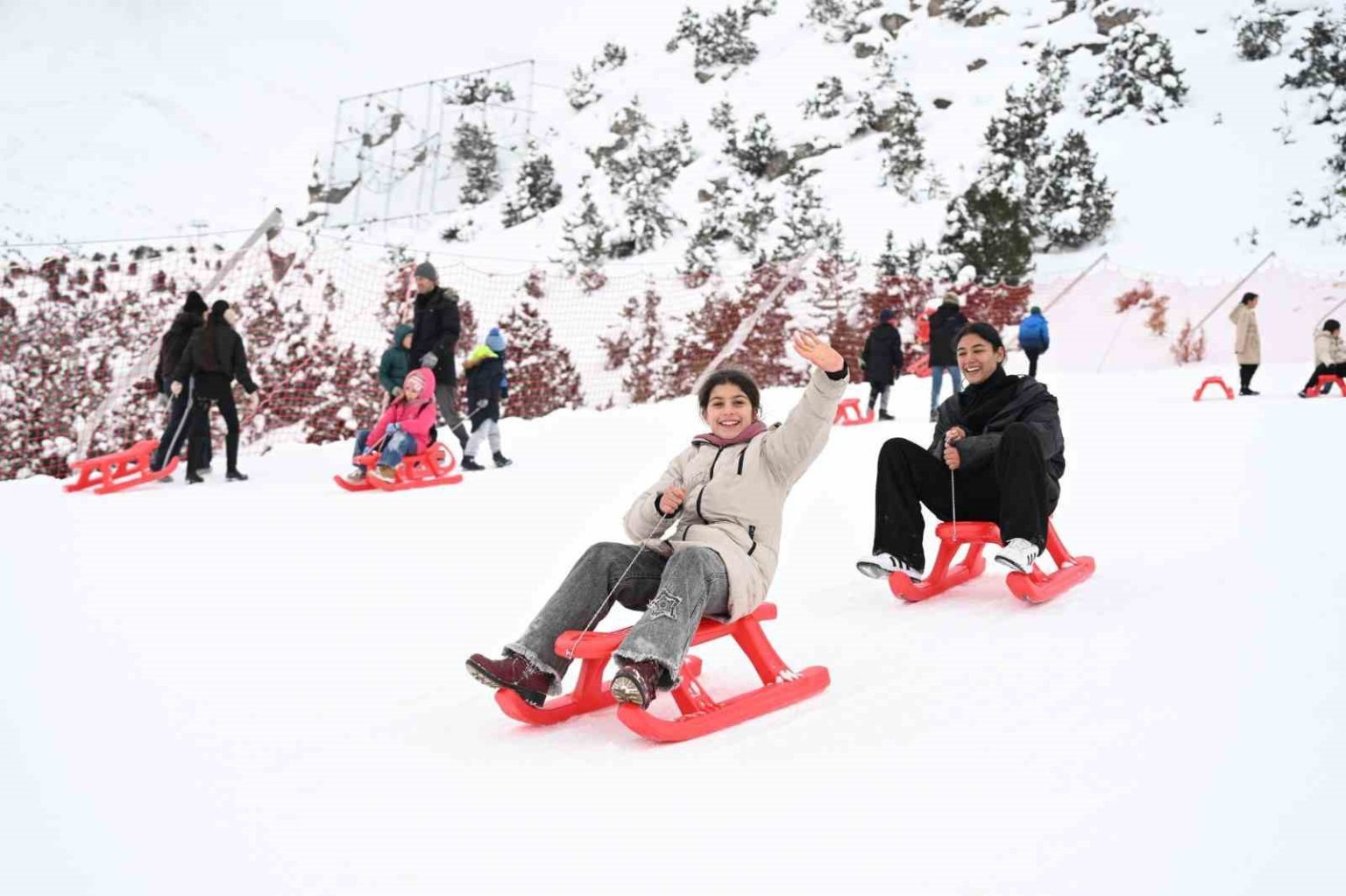ÇOGEP kapsamında yürütülen “Hep Birlikte Aileyiz” projesi çerçevesinde gerçekleştirilen etkinlikte, öğrenciler doğayla iç içe vakit geçirerek çeşitli sosyal ve sportif faaliyetlere katıldı, kızak keyfi yaşadı. Program boyunca çocuklara çeşitli ikramlarda bulunuldu.