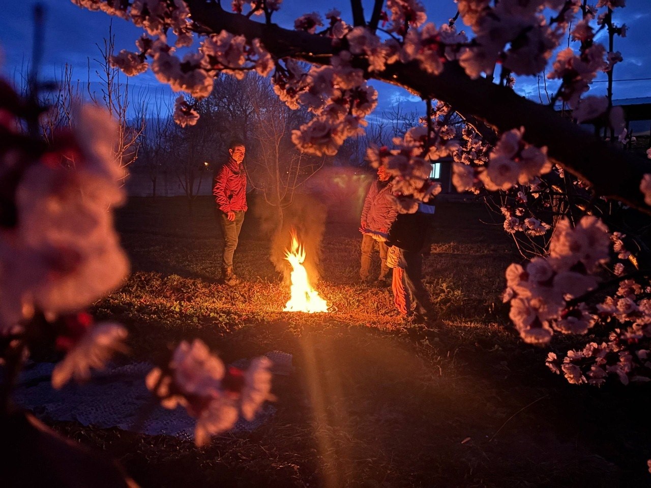 Baharın gelişiyle birlikte kayısı başta olmak üzere elma, kiraz ve diğer meyve ağaçlarının çiçek açtığı kentte, ani sıcaklık düşüşleri üreticileri endişelendiriyor. Gece boyunca bahçelerinde nöbet tutan çiftçiler, farklı noktalarda kontrollü ateşler yakarak oluşan ısı ve duman sayesinde ağaçların zarar görmesini önlemeye çalışıyor.