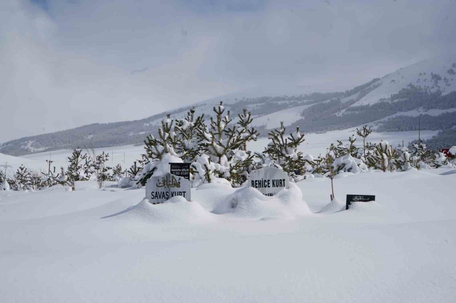 Palandöken’in eteklerine yakın alanda bulunan Asri ve Abdurrahman Gazi Mezarlıklarında mezarlar tamamen kara gömüldü. Mezarlıkların içinde temizlenen yollardaki kar yüksekliği 2 metreyi buldu.