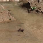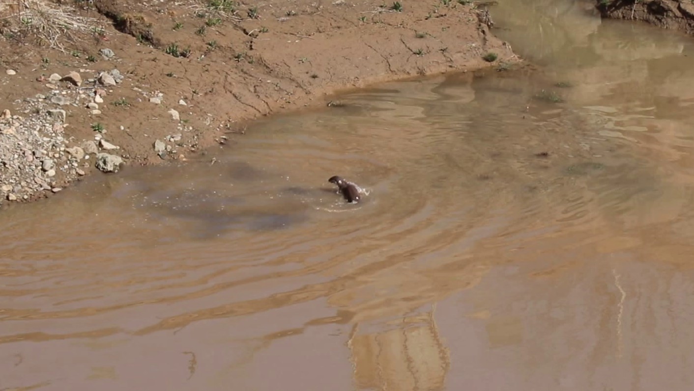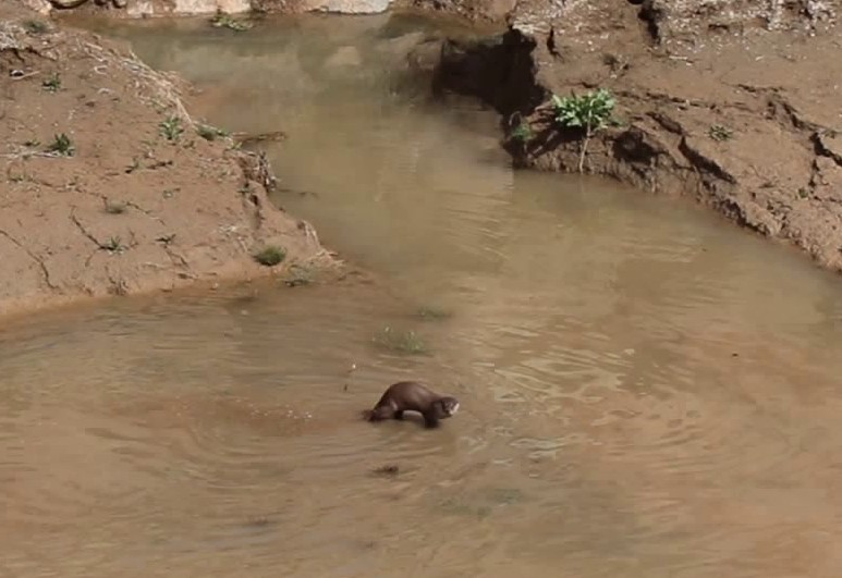 Nesli tehdt altındaki su samuru, Erzurum’un Olur ilçesi Ormanağzı köyünde görüntülendi.