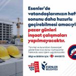 Esenler Belediyesi, ilçede vatandaşların hafta sonunu daha huzurlu geçirebilmesi için pazar günleri inşaat çalışmalarını yasakladı. Kurala uymayanlara ise cezai işlem uygulanacak.