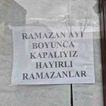 Ramazan ayının başlamasıyla birlikte Eskişehir’in çeşitli mahallelerinde ve çarşı merkezinde faaliyet gösteren pek çok esnaf, çalışma takviminde düzenlemeye gitti. Özellikle gıda sektörü ve seyyar satıcılar başta olmak üzere bazı dükkân sahipleri, “Ramazan ayı dolayısıyla kapalıyız” şeklindeki yazılı notları vitrinlerine iliştirdi. Bazı esnaflar ayın tamamında hizmete ara verirken, bazıları ise yalnızca Ramazan’ın belirli günlerinde kapalı kalacaklarını bildirdi. Sokak aralarında ve ana caddelerde camları süsleyen bu el yazısı notlar, kentin Ramazan atmosferine dair dikkat çeken bir ayrıntı oluşturdu.