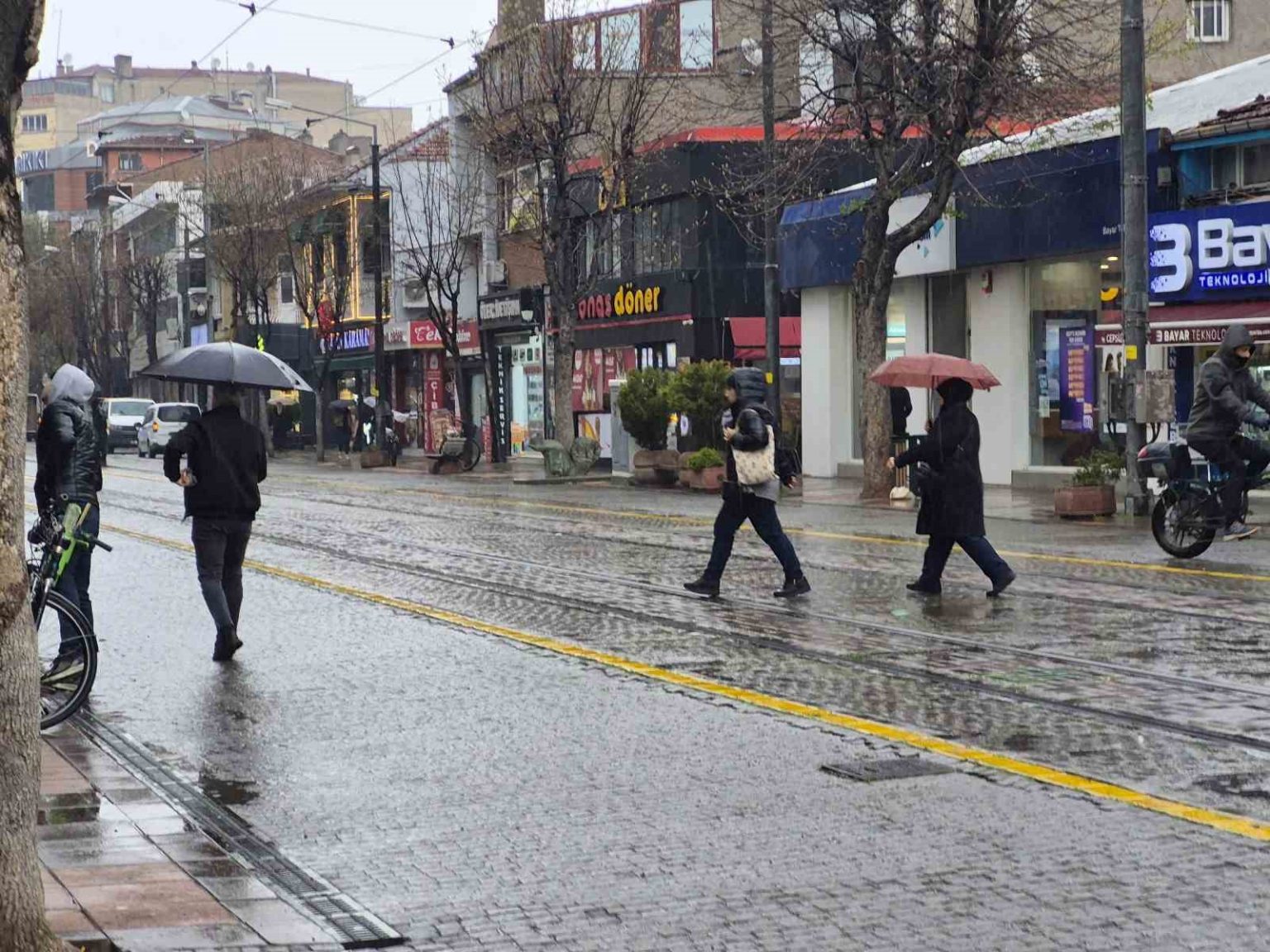 Günün erken saatlerinde yayımlanan hava tahmin raporlarında, bölge genelinde yer yer kuvvetli sağanak geçişlerinin yaşanabileceği konusunda vatandaşlar bilgilendirilmişti. Yağışın başlamasıyla birlikte cadde ve sokaklardaki hareketlilik yerini sakinliğe bıraktı; tedbirsiz yakalananlar dükkan tentelerinin ve bina saçaklarının altına sığındı. Ancak bir dükkanın önünde tentenin demir aksamını onaran usta, yağmura rağmen elindeki kaynak makinesiyle çalışmasını durdurmadı.