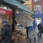 Öte yandan dükkanlarda asılı olan tentelerin ve şemsiyelerin fırtına sebebi ile sallandığı görüldü. Ayrıca çevre esnafı dışarıda bıraktığı ürünlerini, eşyalarını ve malzemelerini toparladı.