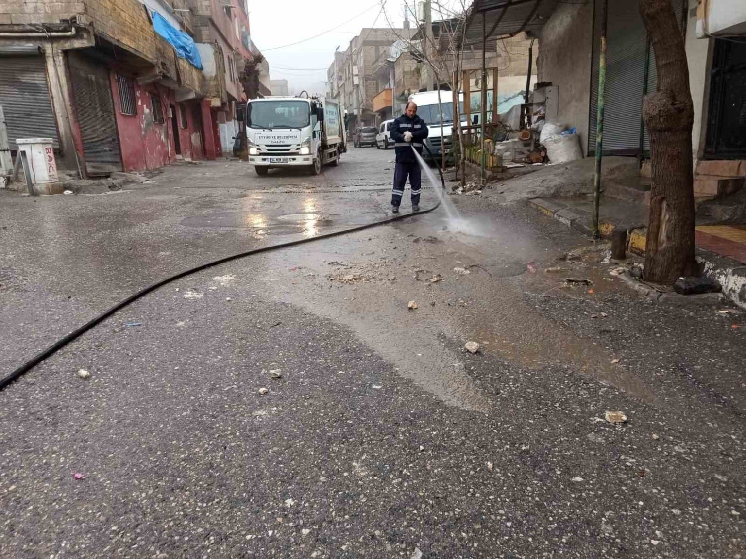 Şanlıurfa’nın Eyyübiye ilçesinde harekete geçen belediye ekipler, kısmi sel baskınlarının yaşadığı mahallelerde temizlik çalışmalarını sürdürüyor.
