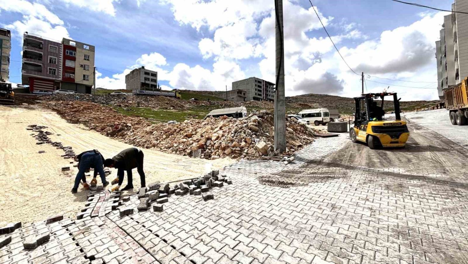 Eyyübiye Belediyesi’nin, plansız yapılaşmayı önleme çalışmaları kapsamında cazibesi artan ve özel sektörün büyük ilgi gösterdiği Yenice Mahallesi’nde, ruhsatlı yapıların tamamına ulaşımın rahatça sağlanabilmesi hedefleniyor. Bu hedef doğrultusunda büyük bir gayretle çalışmalarını sürdüren Eyyübiye Belediyesi Fen İşleri Müdürlüğü ekipleri, yeni yollar açarak hızla kilitli parke döşemesini tamamlayıp hizmete sunuyor.