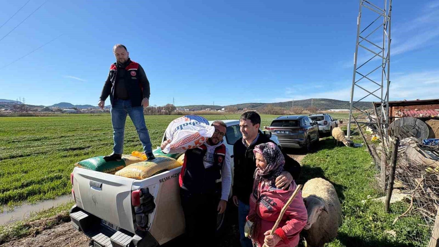 Çanakkale’nin Ezine ilçesinde sağanak yağışlar nedeniyle yaşanan taşkından etkilenen yetiştiricilere yem desteği sağlandı.