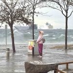 İstanbul’da etkili olan lodos, hayatı olumsuz etkiledi. Yenikapı’da şiddetli lodos nedeniyle dev dalgalar kıyıyı dövdü. Dalgaların boyu büyüyünce adeta deniz ile kara birleşti. O anlarda sahilde fotoğraf çekmeye çalışanlar zor anlar yaşadı. Deniz suyunun içerisinde kalan bir kadının çabası kameraya yansıdı.
