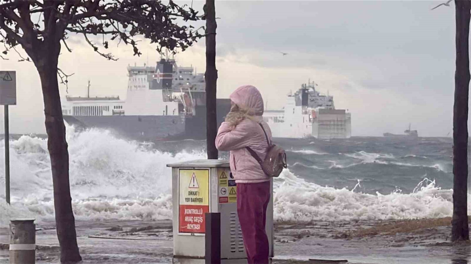 İstanbul’da etkili olan lodos, hayatı olumsuz etkiledi. Yenikapı’da şiddetli lodos nedeniyle dev dalgalar kıyıyı dövdü. Dalgaların boyu büyüyünce adeta deniz ile kara birleşti. O anlarda sahilde fotoğraf çekmeye çalışanlar zor anlar yaşadı. Deniz suyunun içerisinde kalan bir kadının çabası kameraya yansıdı.