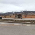 Karaman’da fırtınanın etkisiyle devrilen kamyonetin römorkunun karşı şeride fırladığı anlar cep telefonu kamerasına yansıdı. Yaşanan fırtına nedeniyle 3 araç yoldan çıkarak devrilirken, 1 kişi yaralandı.