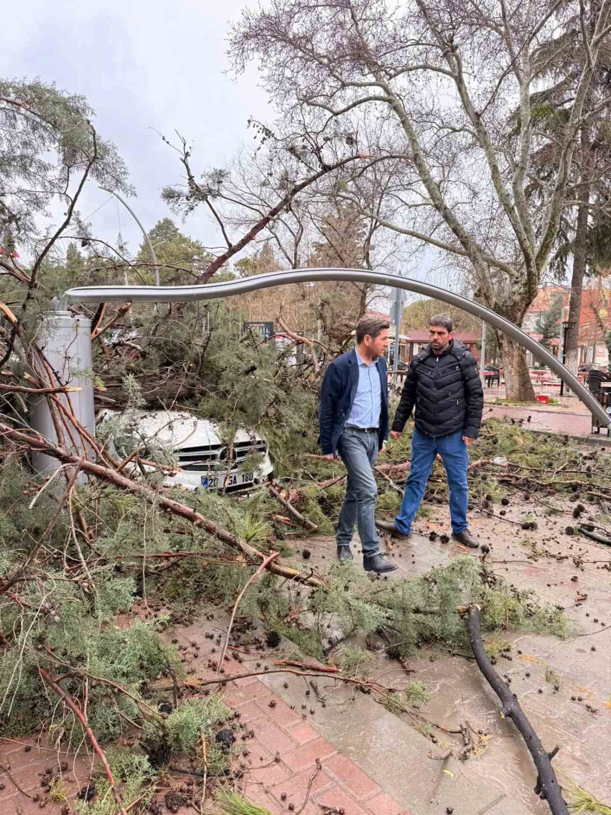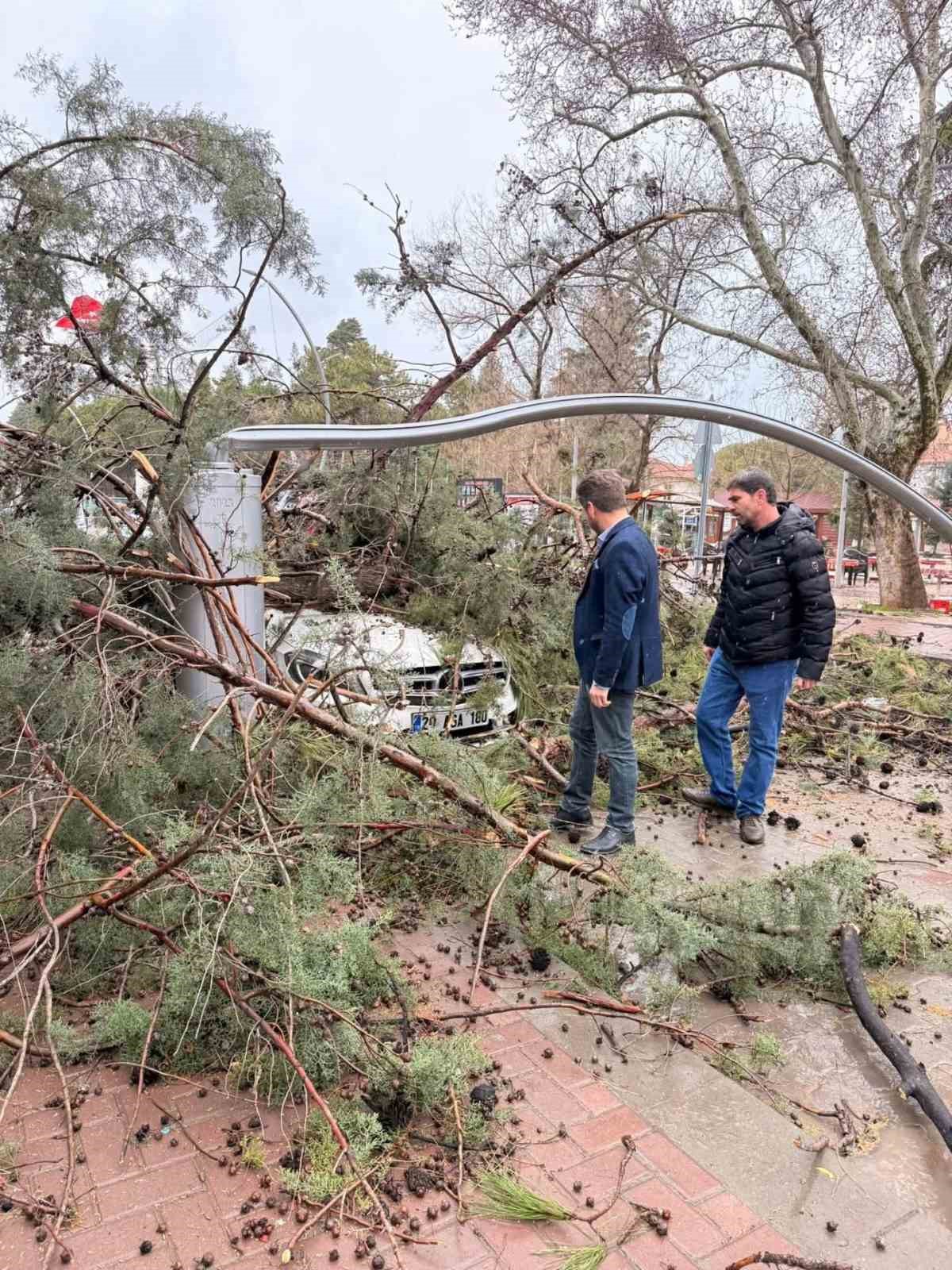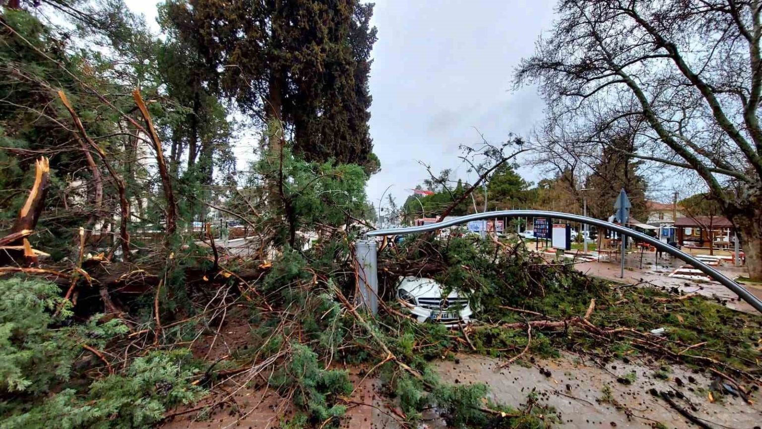 Denizli’nin Tavas ilçesinde etkili olan şiddetli fırtına, günlük yaşamı olumsuz etkiledi. Kuvvetli rüzgara dayanamayan birçok ağaç devrilirken, bazıları elektrik kablolarına ve direklere zarar verdi. İlçede yaşanan olaylardan birinde, dev bir ağaç rüzgarın etkisiyle kökünden sökülerek elektrik direğinin ve park halindeki lüks bir otomobilin üzerine devrildi. Olayda can kaybı yaşanmazken, araçta ve elektrik altyapısında hasar meydana geldi.