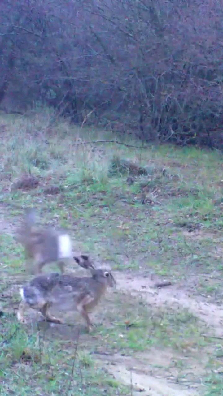 Edirne’de fotokapanlar, bu kez iki yaban tavşanını görüntüledi.