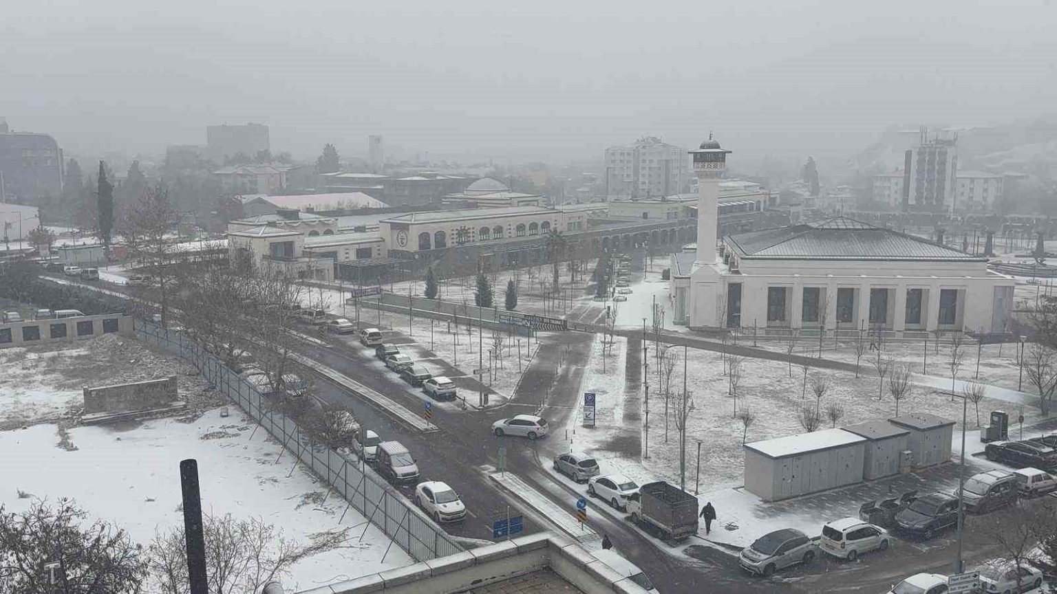 Gaziantep’te beklenen yoğun kar yağışı etkisini göstermeye başladı, kentin pek çok noktası kısa sürede beyaz örtüyle kaplandı.