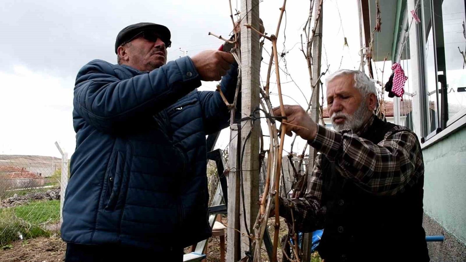 Yozgat’ın Özlüce köyünde bahçesindeki üzüm asmaları budayan Bekir Ezen, bu yıl üzümden umutlu olduklarını belirterek, “Havalar biraz iyi, meyve de falan pek soğuk vurulmadı da üzüm biraz daha geç açtığı için bu yıl inşallah üzüm yiyeceğiz” dedi.