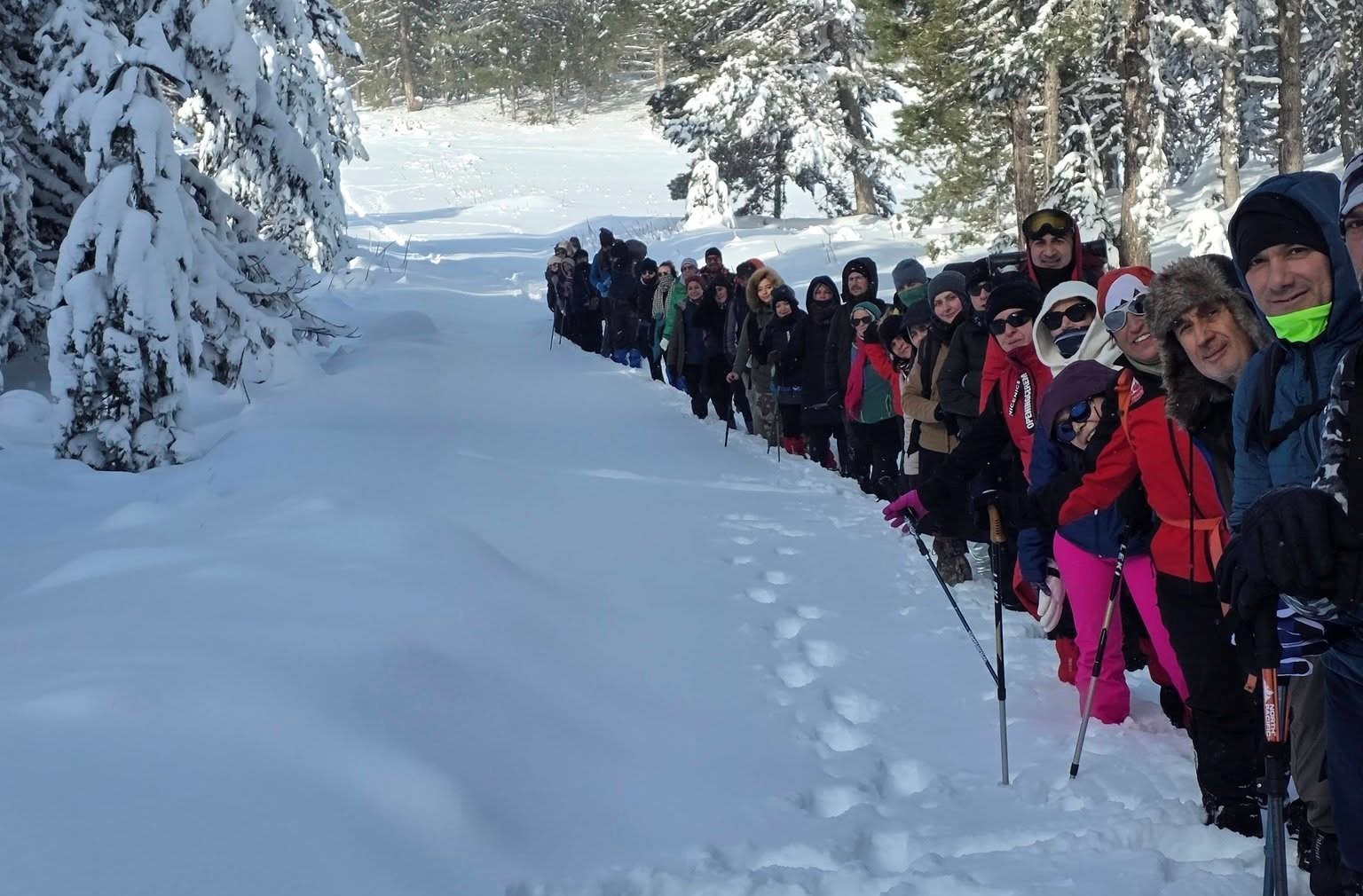 Kütahya’nın Gediz ilçesinde bulunan Murat Dağı Termal ve Kayak Merkezi’nde kar yürüyüşü gerçekleştirildi.