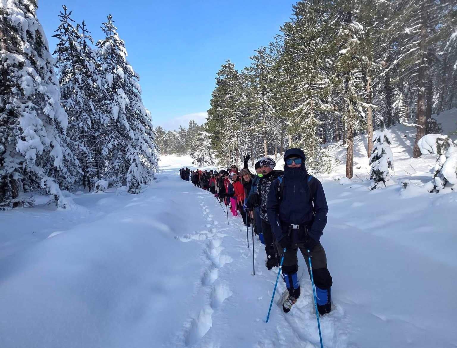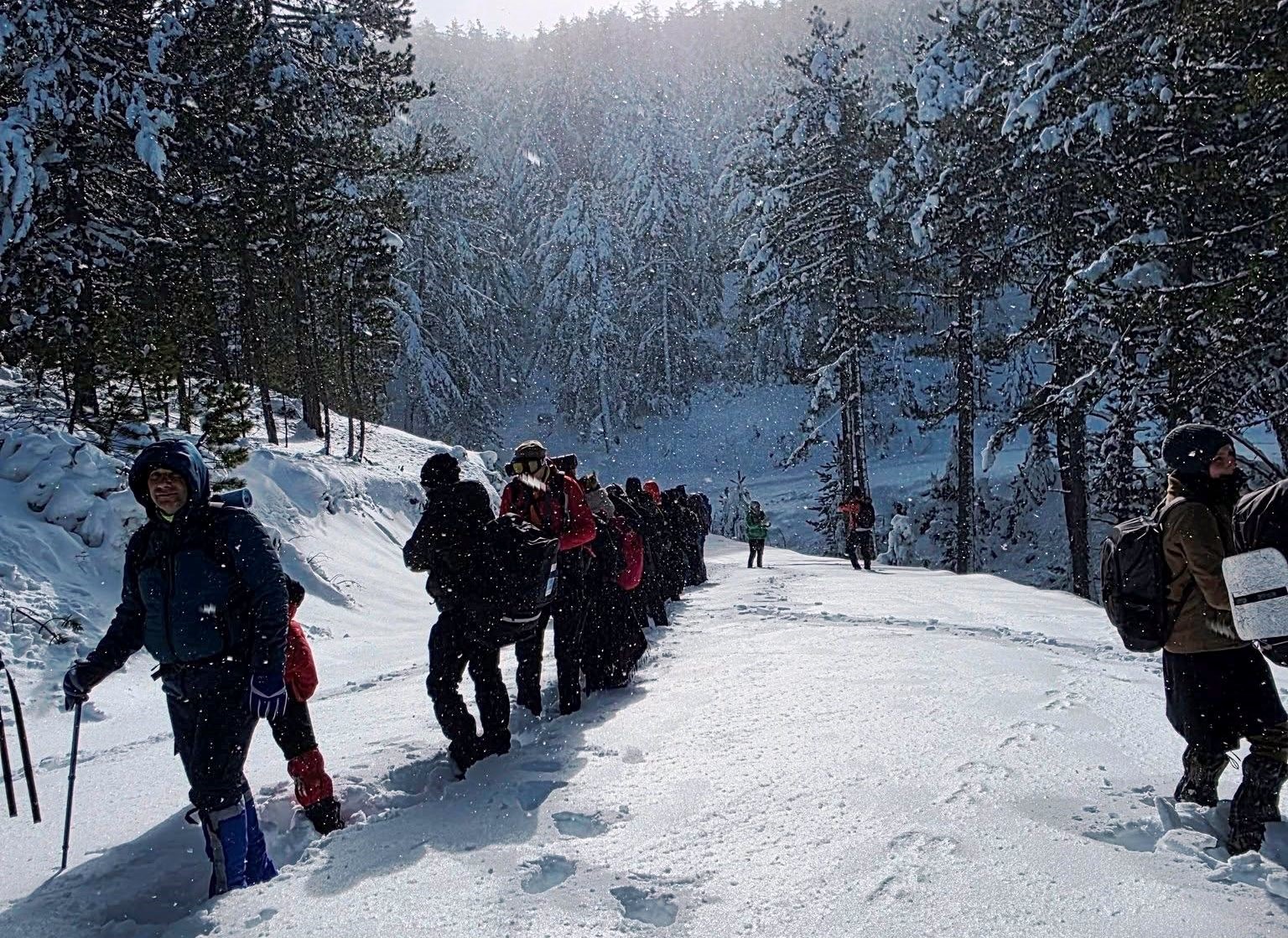 Gediz Murat Dağı Termal ve Kayak Merkezinde kar yürüyüşü