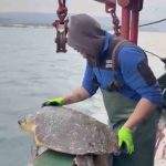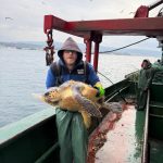 Çalı Balıkçılık teknesi tayfasından Oktay Şahin, “Çanakkale Boğazı Gelibolu açıklarında Çalı Balıkçılık teknesi ile avlanıyorduk. Ağlarımızın sonuna yaklaştığımızda caretta caretta kaplumbağası ağlarımıza denk geldi. Onu incitmeden nazik bir şekilde ağlarımızın içinden alıp ait olduğu yere, denize iadesini yaptık. Çalı Balıkçılık olarak hiçbir deniz canlısına zarar vermeden ait olduğu yere, denize iade ediyoruz. Genelde bu caretta carettalar Çanakkale Boğazı ve Ege Denizi’nde çıkıyor. Bizim avlanma bölgemiz buraları olduğu için zaman zaman ağlarımıza takılan bu canlara zarar vermeden denize iade ediyoruz” dedi.