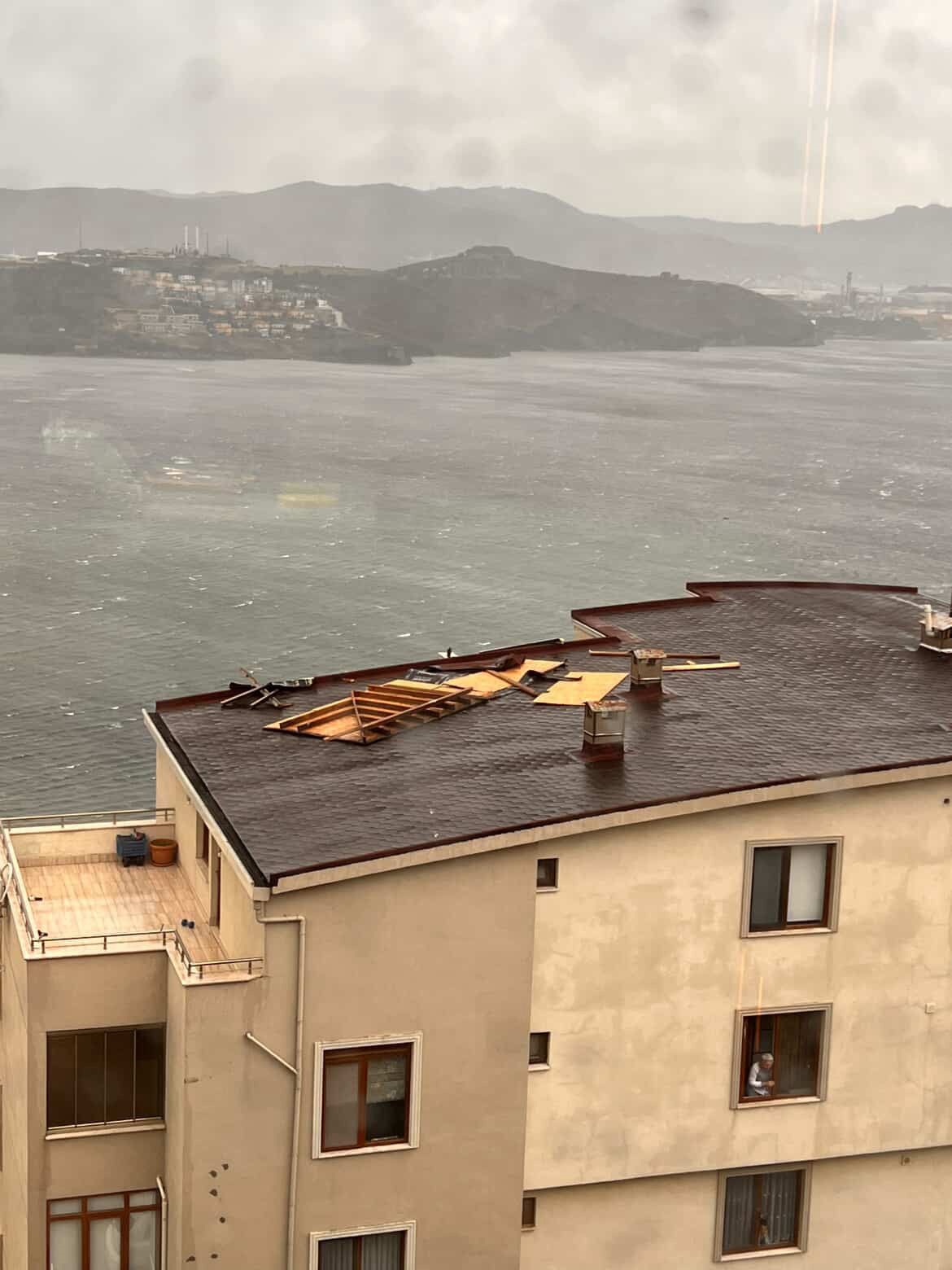 Gemlik’te şiddetli lodos sebebiyle çatılar bir bir uçtu