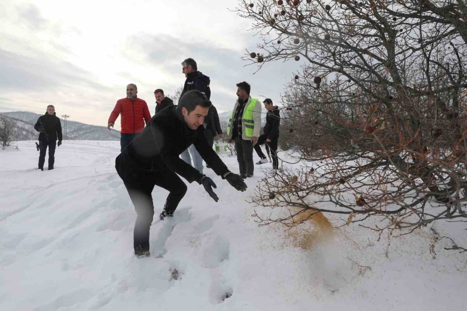 Kaymakam Muhammet Güzel, İlçe Jandarma Komutanı Sinan Sert, katılımıyla ilçeye bağlı Doğanca Köyü Süveran Mezrası bölgesinde çalışma gerçekleştirildi. Son günlerde etkisini artıran yoğun kar yağışı nedeniyle doğal yaşamın olumsuz etkilenmemesi amacıyla yapılan çalışmada, GİBS-DER ekiplerinin katkılarıyla önceden tespit edilen alanlara yaban hayatı göz önünde bulundurularak farklı türlerde yem ve yiyecekler bırakıldı.