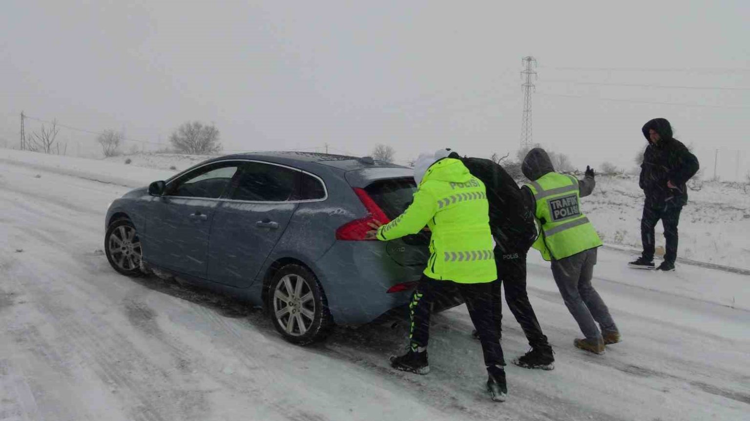 Gercüş’te karda kalan arabaların imdadına polis yetişti