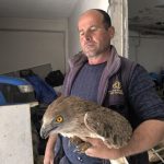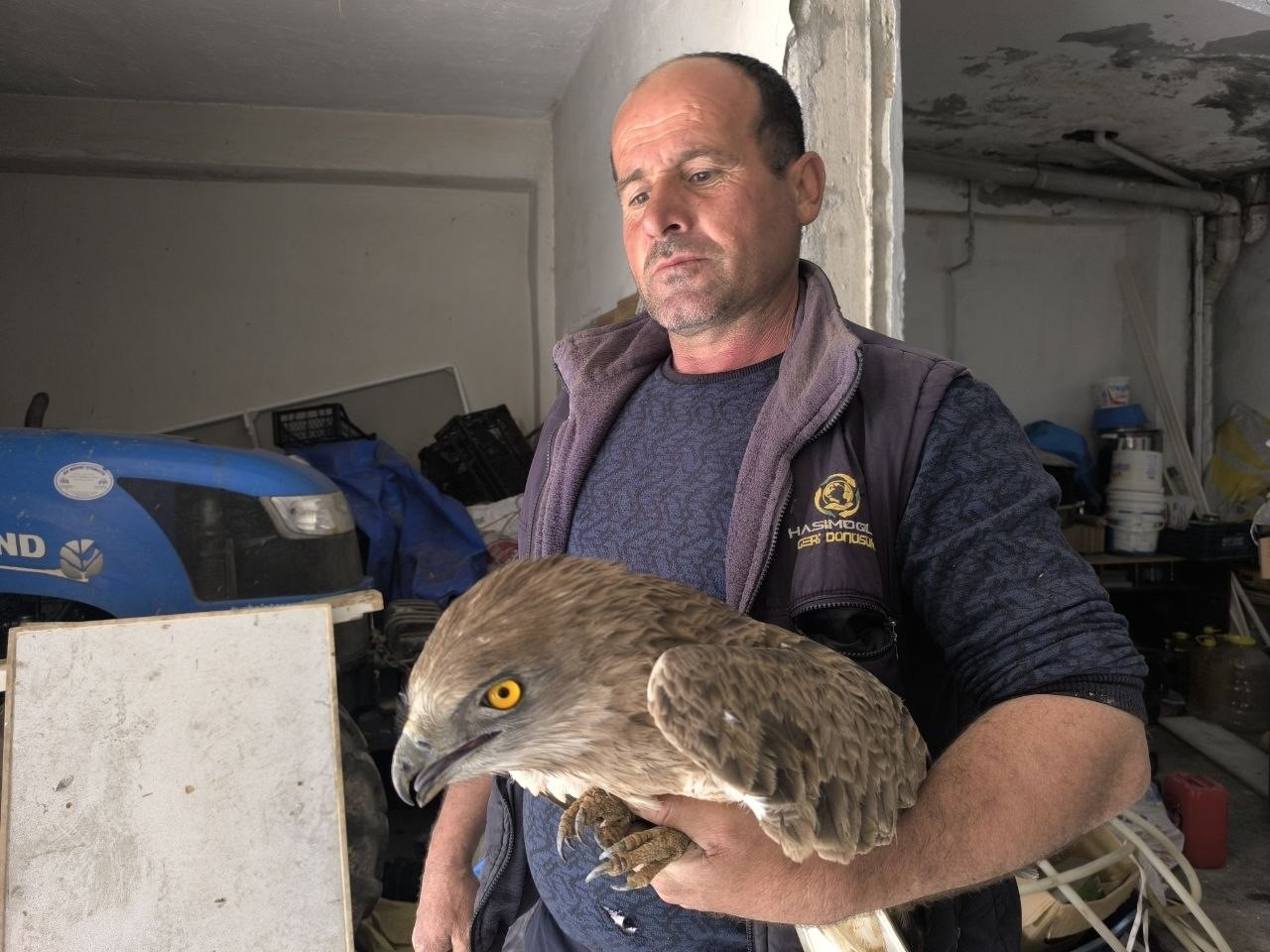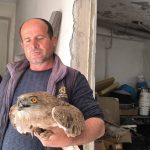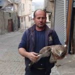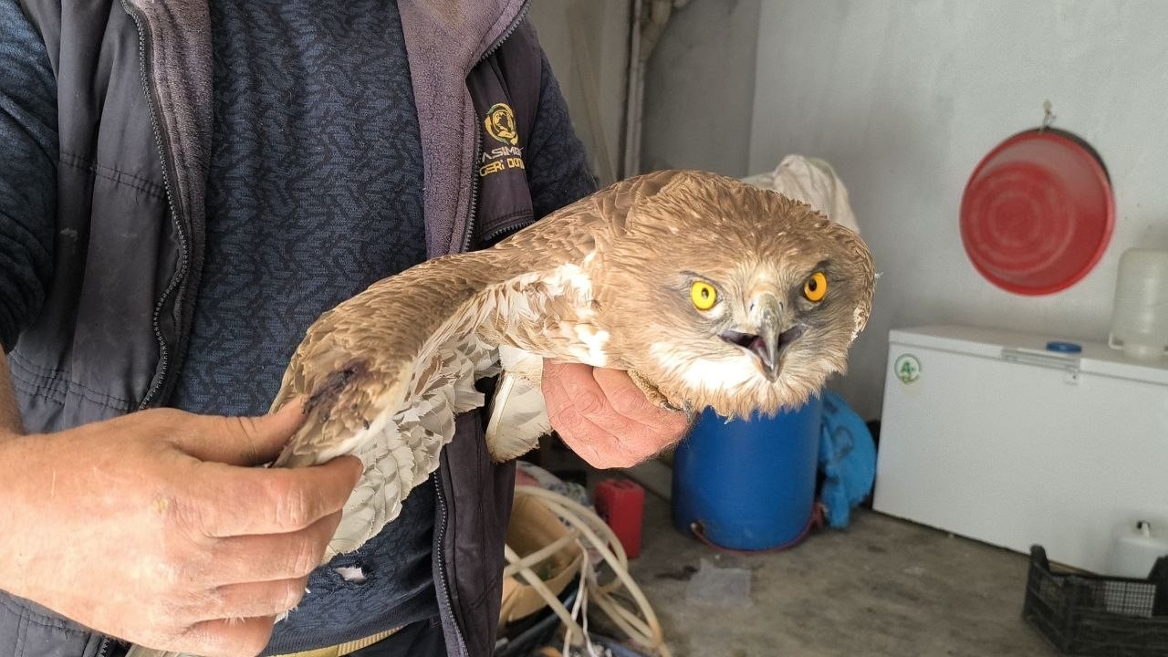 “Bağımda budama yaparken yan taraftaki tarlada fark ettim. Yanına gittiğimde kanadından yaralandığını ve bitkin halde olduğunu gördüm. Orada öylece duruyordu, eğer almasaydım ölecekti. Tüfekle yaralandığı belliydi. Eve getirip besledim, biraz kendine gelince hemen Doğa Koruma ve Milli Parklar ekiplerine haber verdim.’’