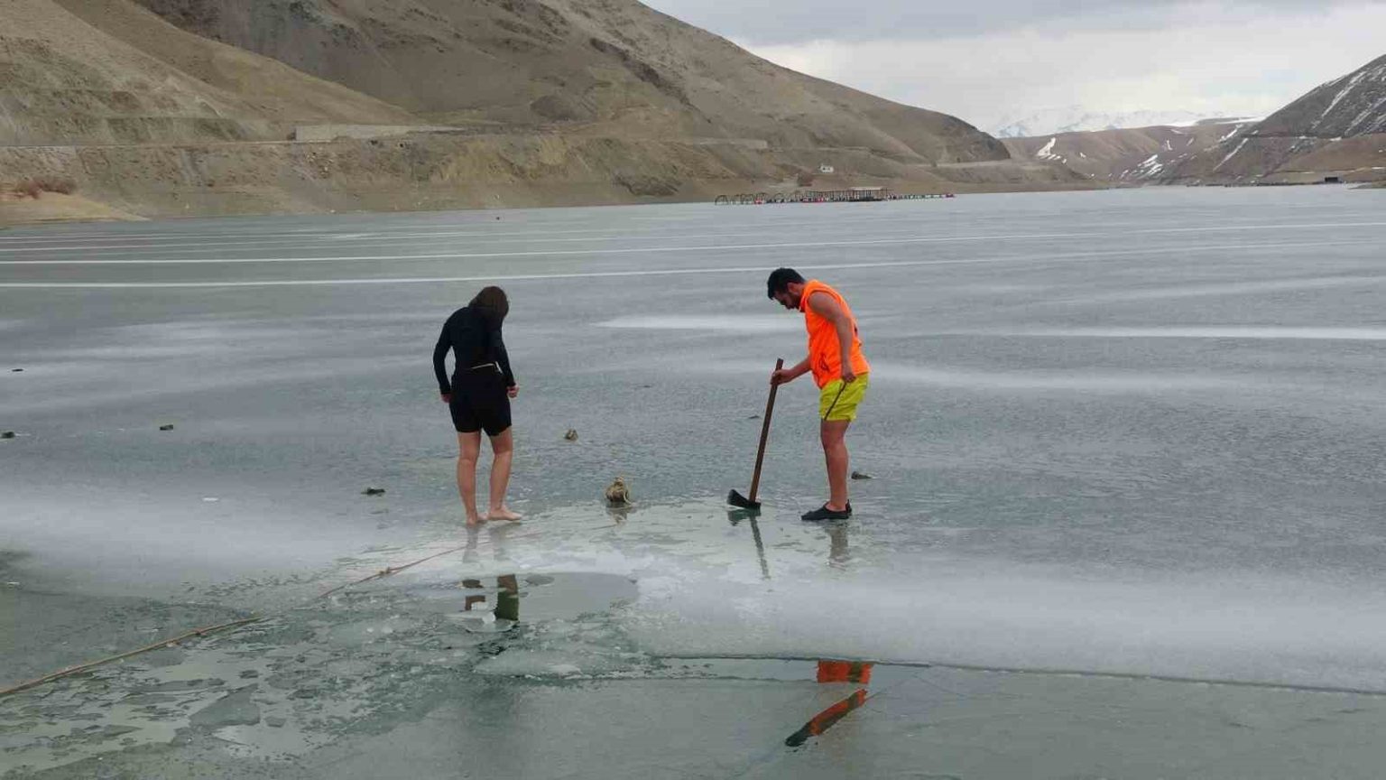 Kış mevsiminin etkisini yoğun şekilde hissettirdiği bölgede, soğuk havaya rağmen dondurucu sulara olan tutkusuyla tanınan ’buz adam’ lakaplı gezgin öğretmen Muhammed Türken, doğayla iç içe gerçekleştirdiği etkinlikle hem sağlıklı yaşama dikkat çekti hem de Van’ın doğal güzelliklerini tanıttı. Daha önce Van Gölü’nün soğuk sularında yüzerek kış turizmine vurgu yapan maceracı öğretmen Türken, beraberinde fizyoterapist Çiğdem Beydüz ile birlikte eksi 8 derece sıcaklıkta Zernek Barajı’ndan Van Gölü çağrısı yaptığı. İlk önce şişme botla barajda dolaşan öğretmen Türken ve fizyoterapist Beydüz, daha sonra buz üzerine çıkarak “Van Gölü kirlenmesin mavi kalsın” sloganı atarak vatandaşları gölü ve doğayı kirletmemeleri konusunda duyarlılığa davet ettiler.