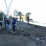 Fırtına ve dev dalgaların etkili olduğu Tirebolu’da hasar tespit çalışmaları sürerken, belediye ekipleri sahil düzenleme ve onarım çalışmalarına başladı.