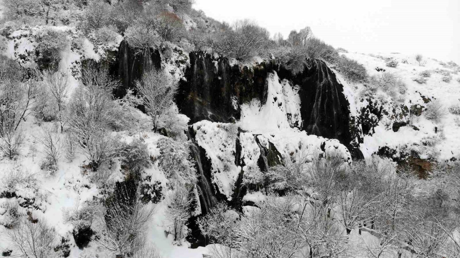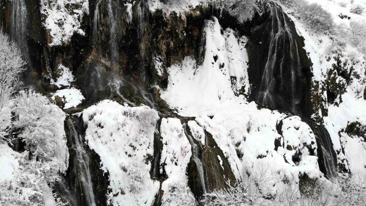 Her mevsim ayrı güzelliğiyle doğaseverlerin ve fotoğraf tutkunlarının ilgisini çeken şelale, yoğun kar yağışının ardından adeta beyaz gelinliğini giydi. Ortaya çıkan görsel şölen, ziyaretçilerin de ilgisini çekti.