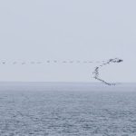 Artvin’in Hopa ilçesinde kaydedilen görüntüler, Karadeniz kıyı hattındaki göçmen kuş hareketliliğini bir kez daha görüntülendi. Göç yolculuğu sırasında göçmen kuşların sergilediği senkronize uçuş hareketleri, Hopa açıklarında deniz yüzeyine yakın şekilde görüntülendi.