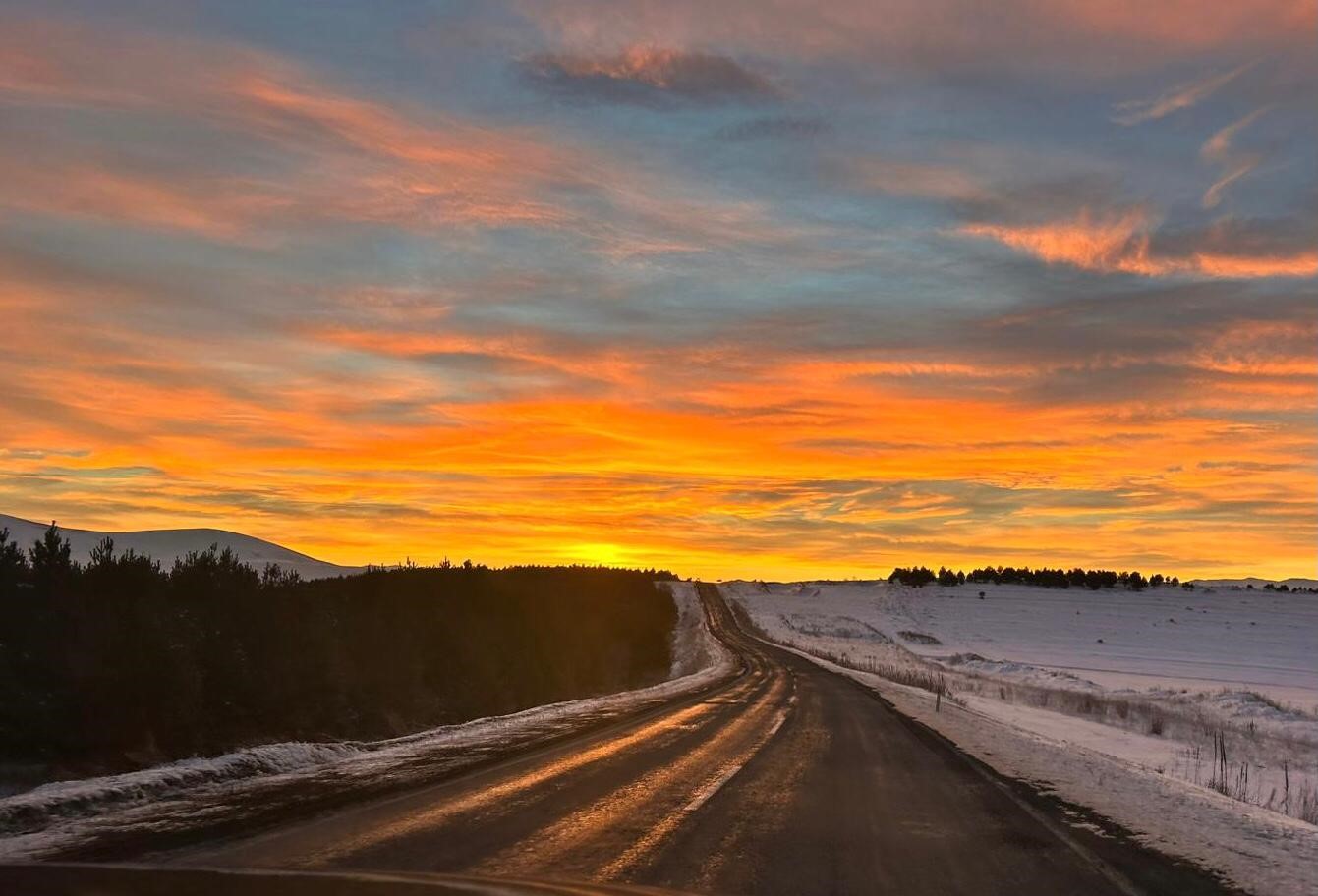 Ardahan’ın Damal ilçesinde güneşin doğuşu ile birlikte gökyüzü kızıla büründü. Ortaya büyüleyici görüntüler çıktı. Ardahan-Damal kara yolunu kullanan sürücüler o anları ölümsüzleştirmek için fotoğraf ve görüntü çekti.