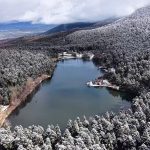 Dron ile havadan kaydedilen görüntülerde, karla örtülü ağaçlar, gölet çevresi ve Devlet Konukevi’nin beyaz örtüyle uyumu dikkat çekti. Her mevsim yerli ve yabancı turistlerin uğrak noktası olan Gölcük Tabiat Parkı, kış aylarında da doğa ve fotoğraf tutkunlarının ilgisini çekmeye devam ediyor.