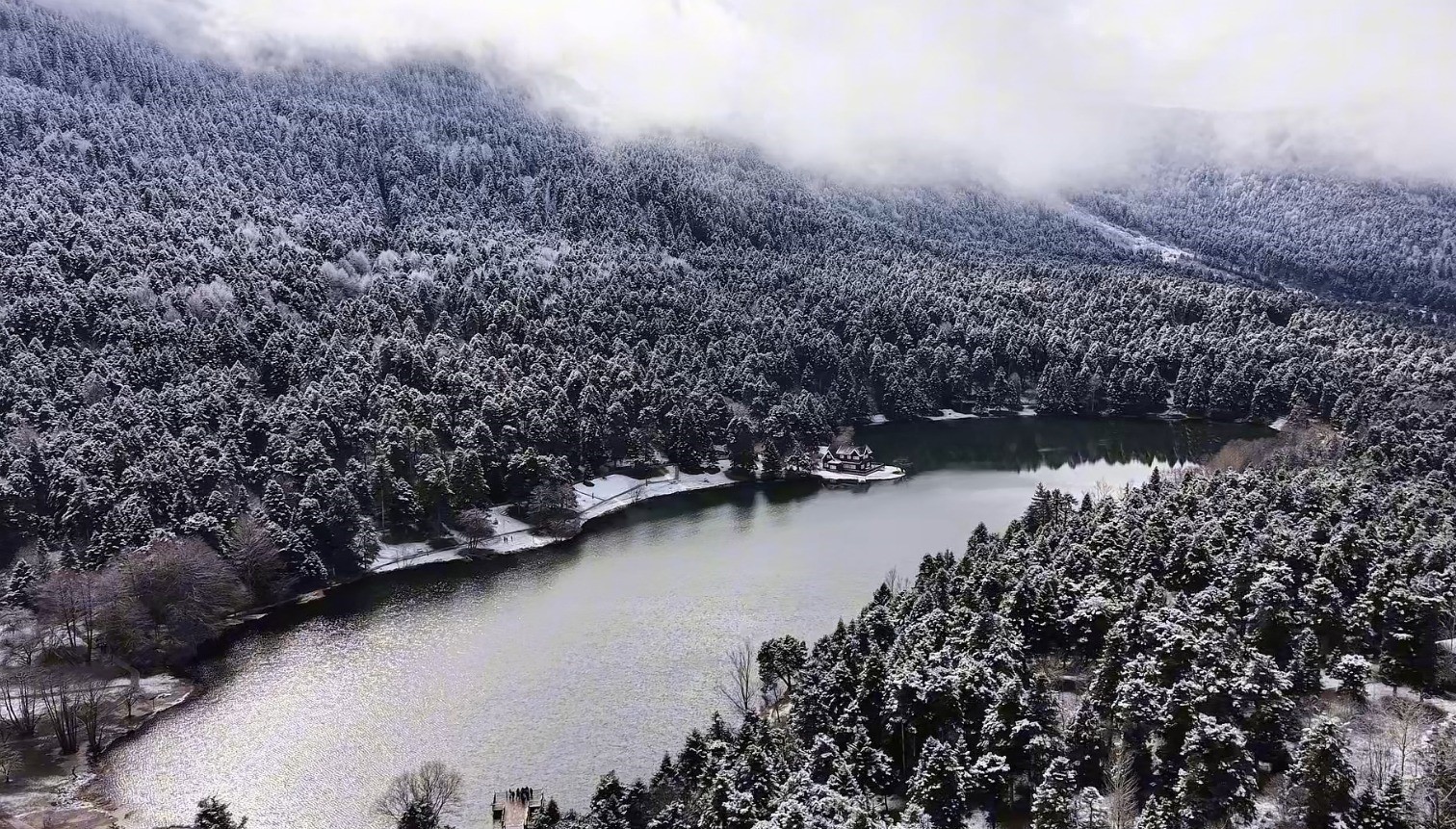 Bolu’nun doğa harikası Gölcük Tabiat Parkı’nda kış güzelliği yaşanıyor. Görenleri büyüleyen muhteşem manzara havadan dronla görüntülendi.