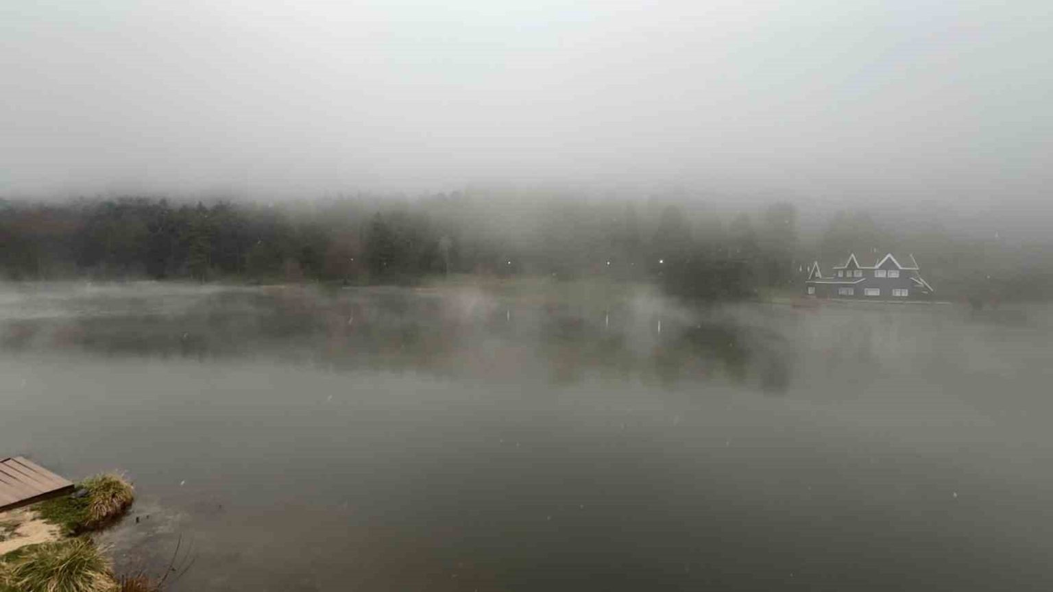 Bolu’nun doğa harikası Gölcük Tabiat Parkı’nda kar yağışı ve sis etkisini gösteriyor.