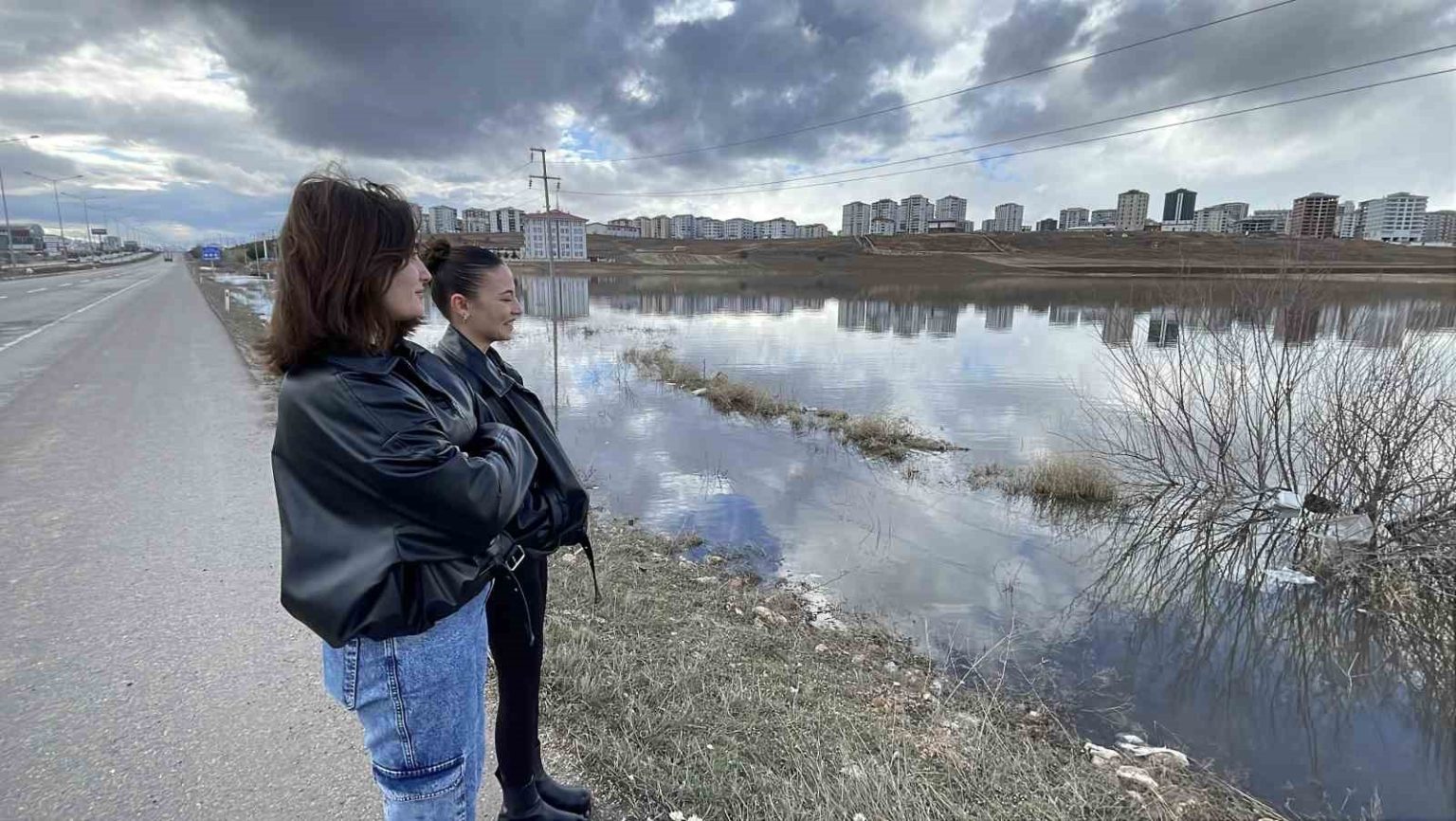 Son yıllarda kuraklıkla yüzleşen Sivas’ta birçok göl kurumuştu, şimdi ise yağan kararın erimesiyle tarım arazileri göle döndü.