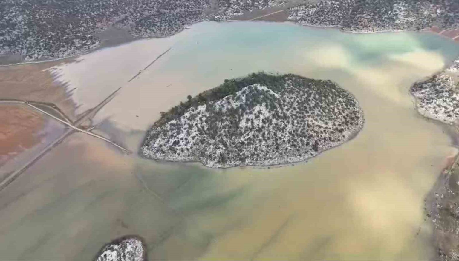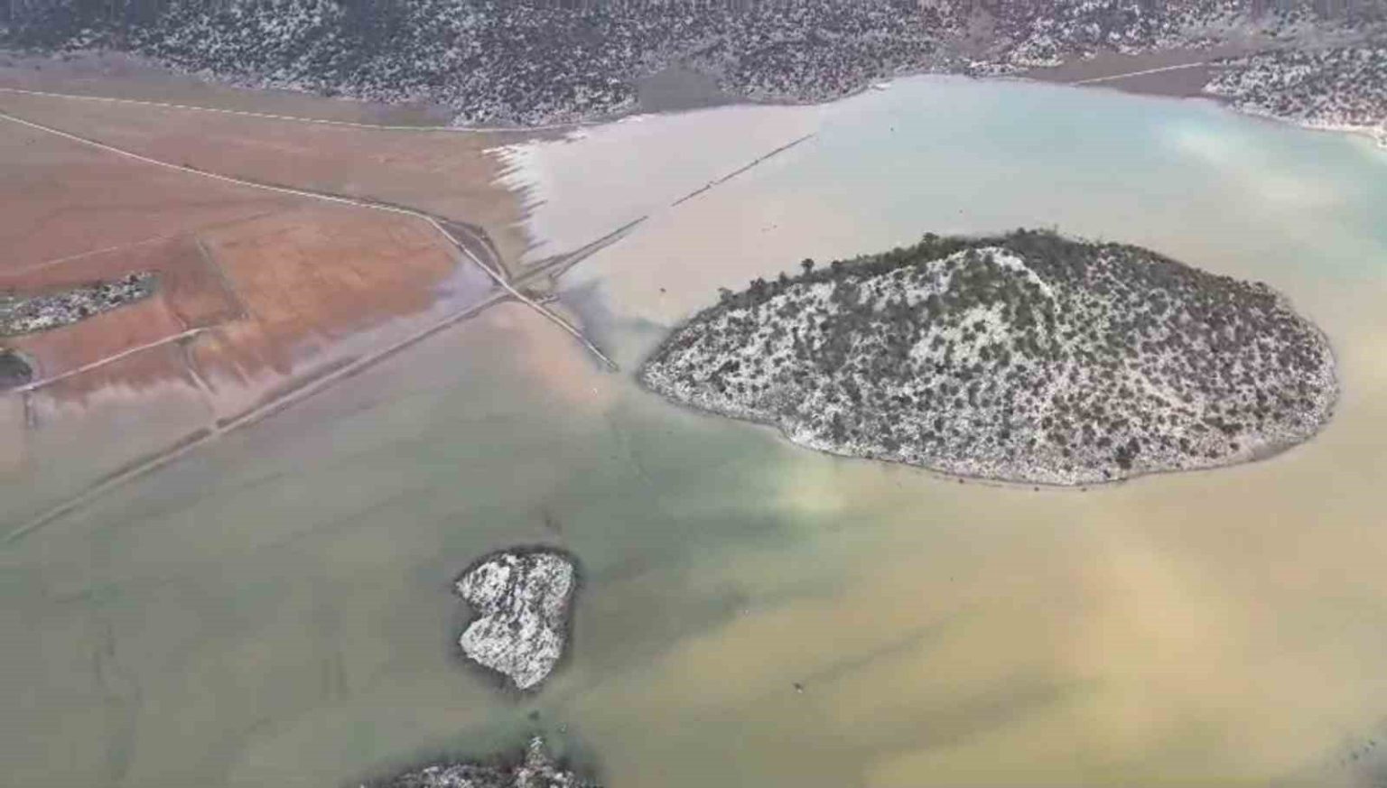 Konya’nın Beyşehir ilçesinde son yağışların ardından ortaya çıkan manzara görenleri şaşırttı. Su basan Kuru Ova’da Meke Gölü’nü andıran görüntüler oluştu.