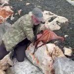 Görenler gözlerine inanamadı: Kayalıktaki dev ahtapotu elleriyle avladı