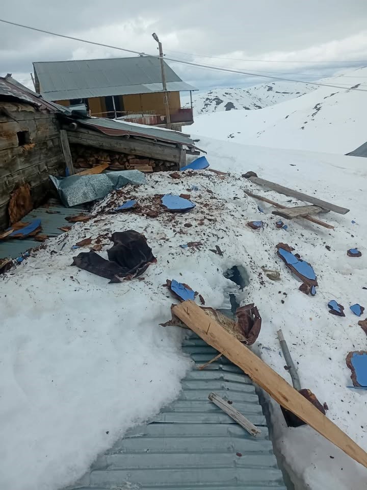 Kış mevsiminin gelmesiyle birlikte ıssızlaşan yaylada, Bahri Yolcu’ya ait taş ve ahşap karışımı evin çatısı, aç kaldığı tahmin edilen bir ayının hedefi oldu.