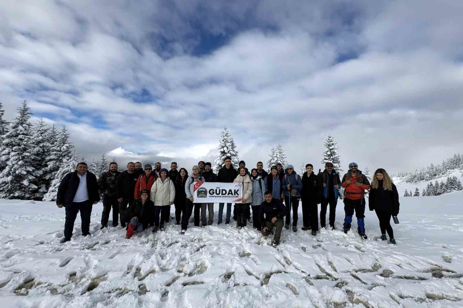 Gümüşhane’de alternatif turizmin ve doğa sporlarının öncüsü olan GÜDAK, bu hafta rotasını Kürtün ilçesine bağlı Özkürtün beldesine çevirdi. Şehrin gürültüsünden uzaklaşarak doğanın kalbine yolculuk yapmak isteyen 28 katılımcı, Karaçukur Mahallesi’nden başlayıp Konacık köyünde sona eren zorlu parkuru başarıyla tamamladı. Karın beyaz bir örtüyle kapladığı coğrafya, katılımcılara unutulmaz anlar yaşattı. Doğaseverler, 15 kilometrelik parkur boyunca kış mevsiminin en güzel hallerine tanıklık etti. Yer yer 20 santimetreyi bulan kar kalınlığı yürüyüşü zorlaştırsa da katılımcılar, kartpostalları aratmayan manzara eşliğinde hem spor yaptı hem de Gümüşhane’nin bakir doğasını fotoğraflama imkânı buldu. Vali Yardımcısı Muhammed Deniz Kılınç’ın da eşlik ettiği yürütüşte sporcular zaman zaman kar üzerinde birbirleriyle güreşti, takla attı, kartopu oynayarak stres attı.