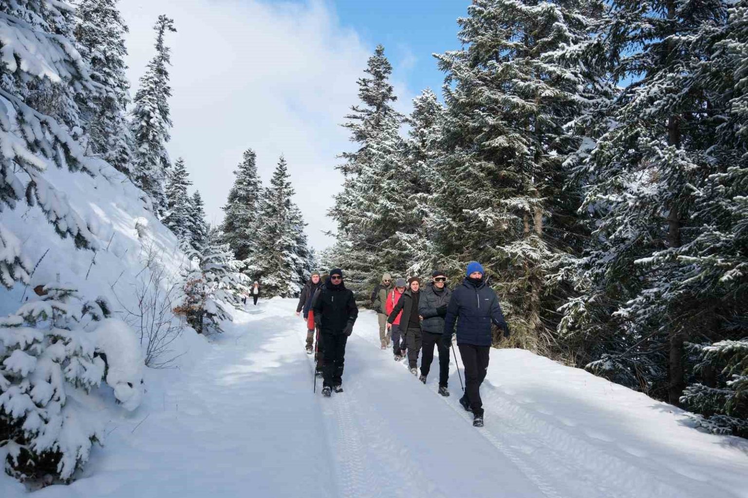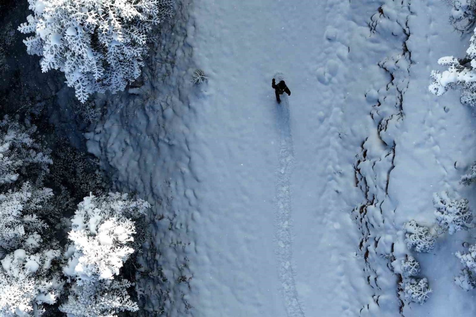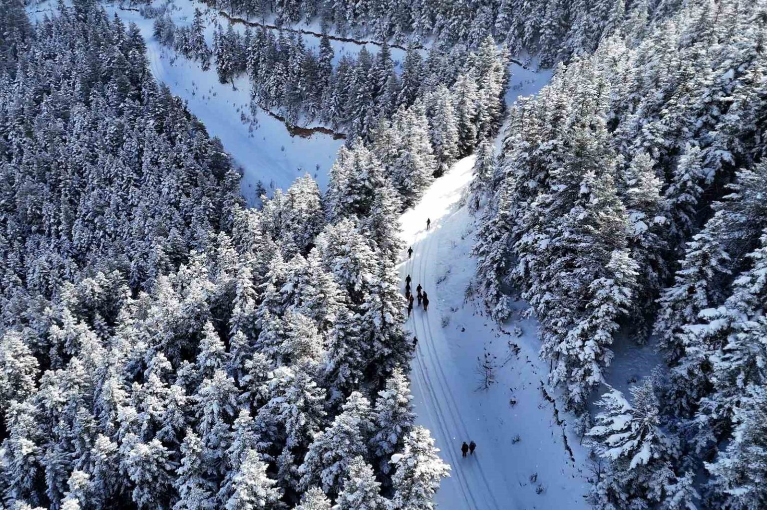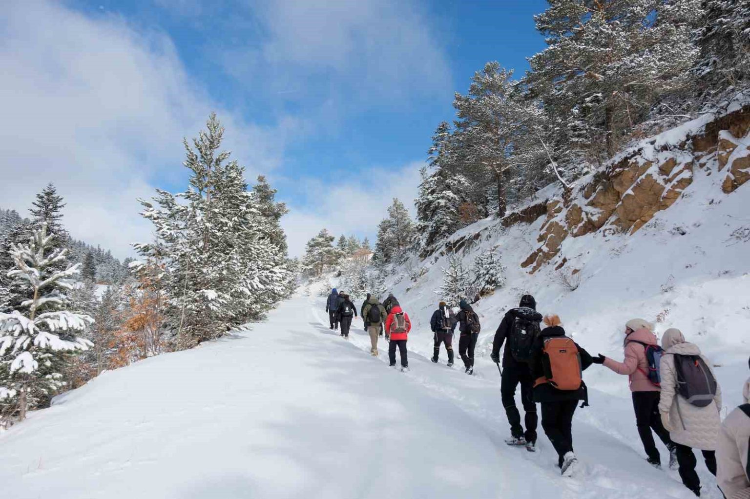 Karla kaplı çam ve göknar ormanları arasında unutulmaz bir gün geçiren sporcular yürüyüş boyunca yer yer 40 santimetreye ulaşan taze kar kütlesinin üzerinde yürüdü.
