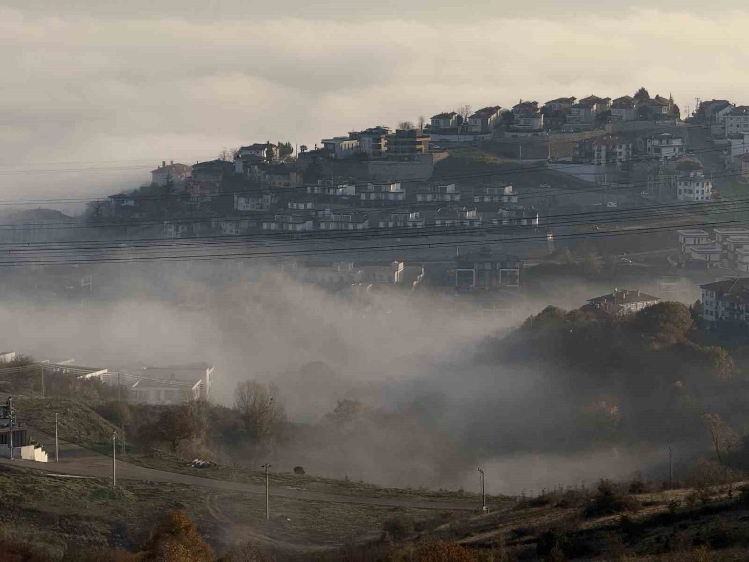 Sakarya’da sabah saatlerinde etkili olan sis, gün doğumuyla birlikte görsel şölen sundu.
