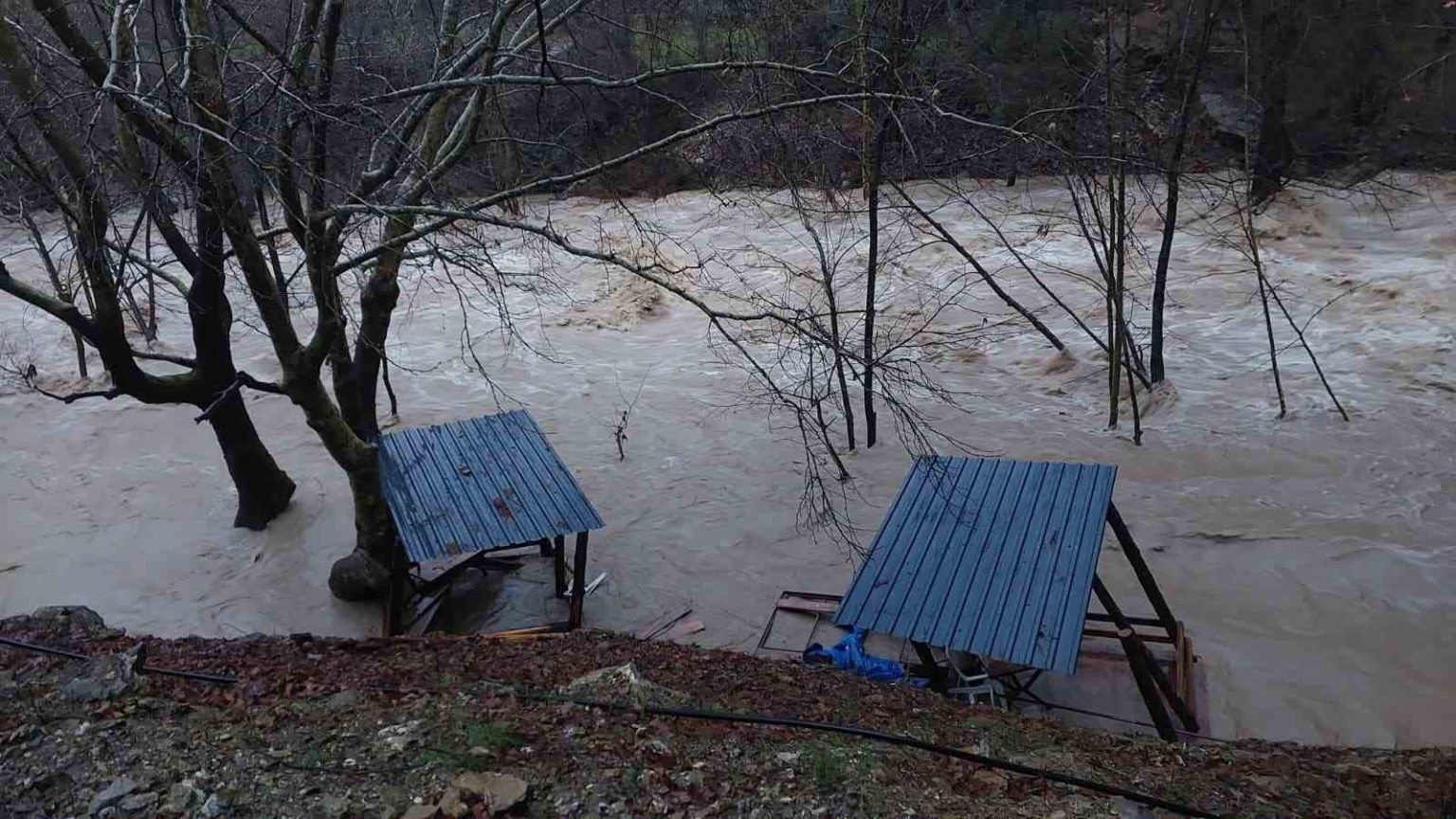 Şelalenin hemen önünde bulunan ve bölge turizmine hizmet veren işletme yükselen su nedeniyle hasar gördü.