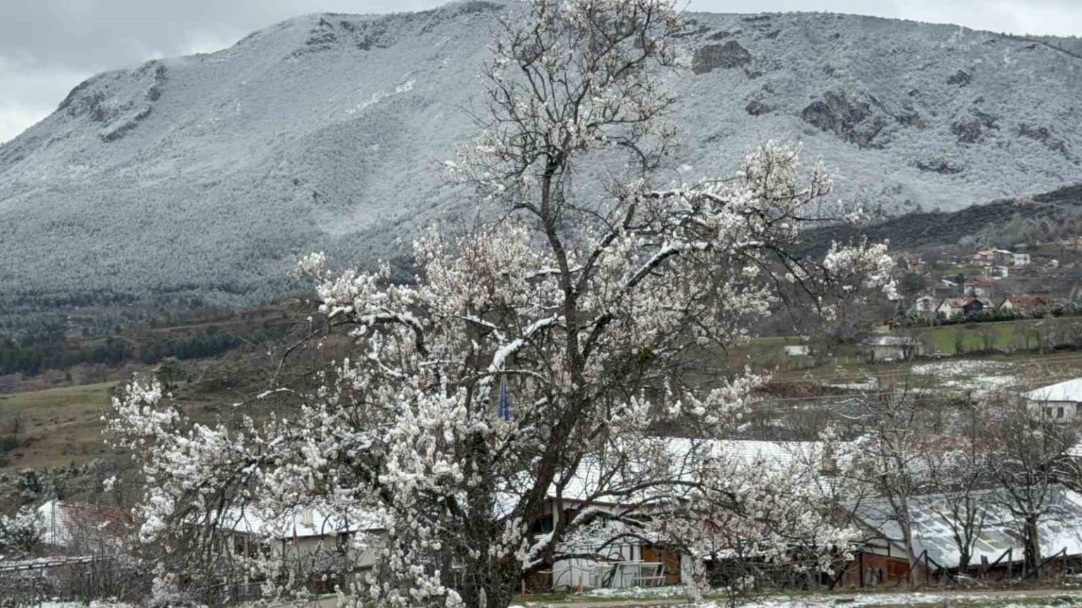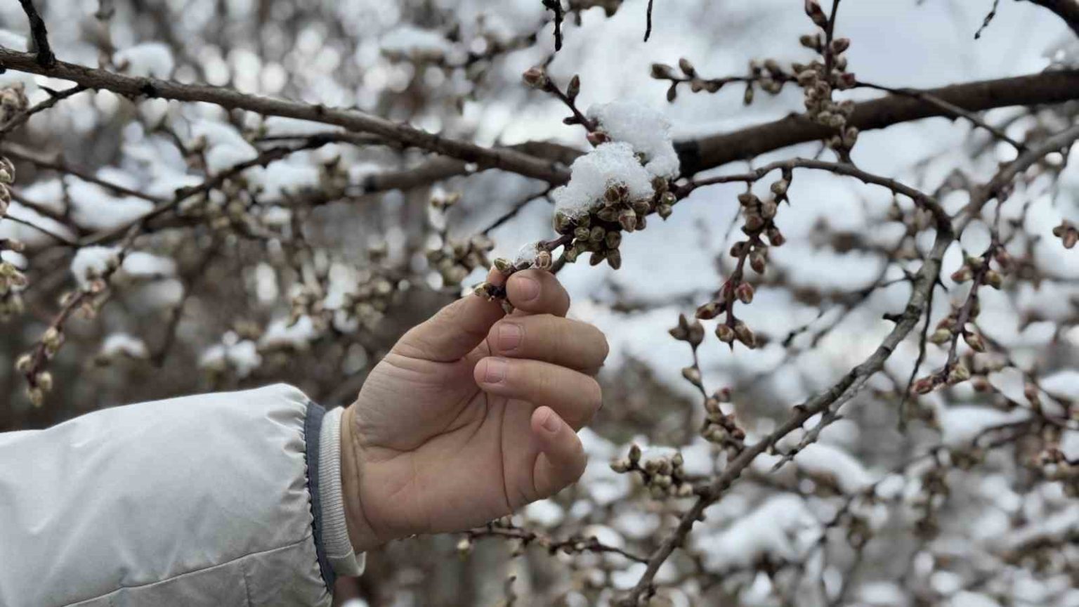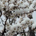Çiçeklerle kaplı dalların üzerini örten kar tabakası, zirai açıdan olumsuzluk ihtimalini de beraberinde getirdi.
