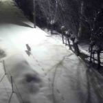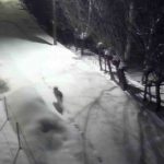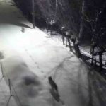 Sert kış şartları nedeniyle kırsalda besin bulmakta güçlük çekip şehir merkezine inen kurtlar, bir evin güvenlik kamerasına yansıdı.