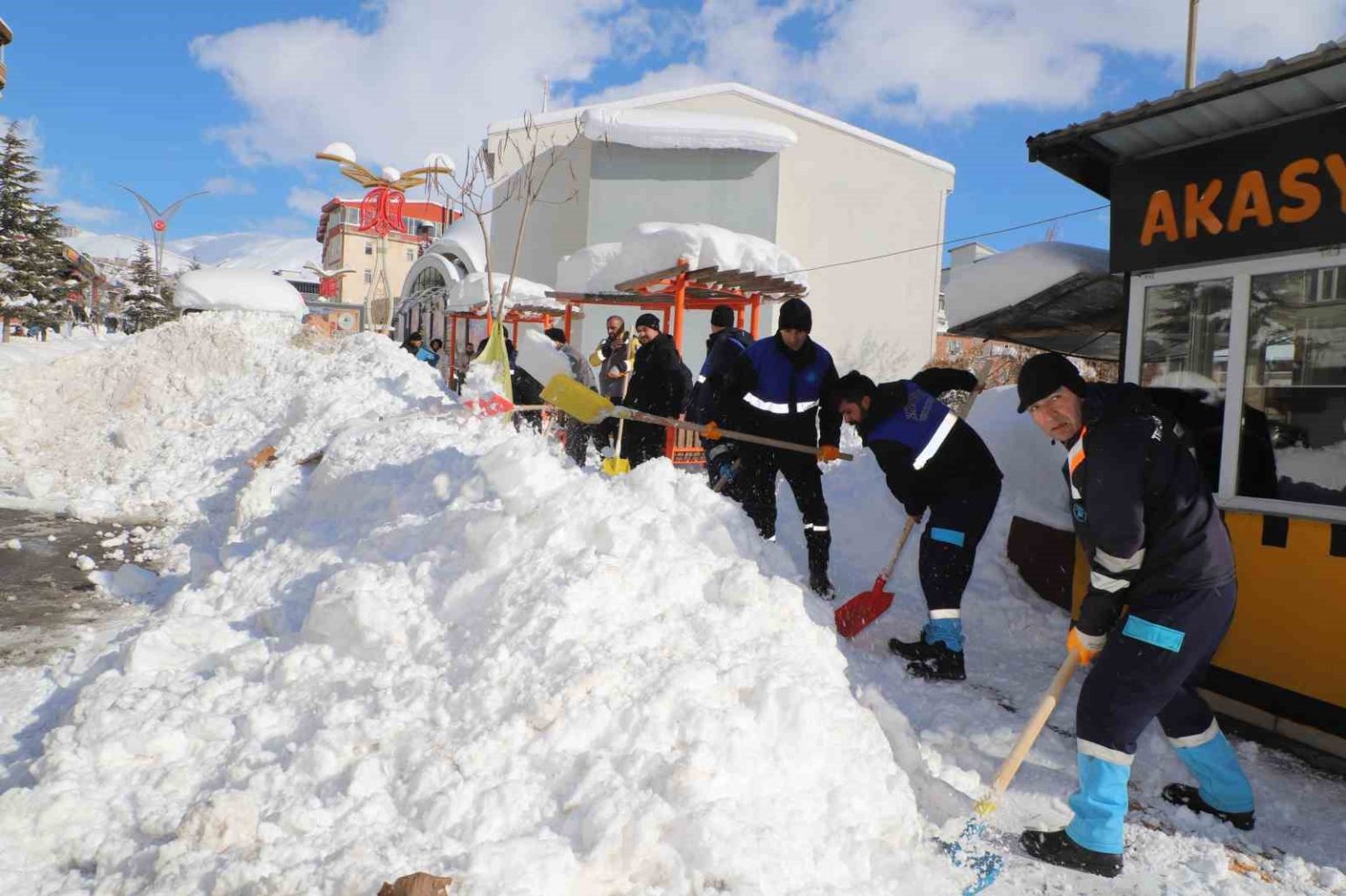 Kent genelinde yer yer 1,5 metreyi bulan kar kalınlığı nedeniyle araçlar adeta kara gömülürken, özellikle dar sokaklarda temizlik çalışmaları yoğunlaştırıldı. Güvenlik korucuları, ellerinde küreklerle belediye ekipleriyle birlikte iş makinelerinin giremediği alanlarda kar temizliği yaptı.