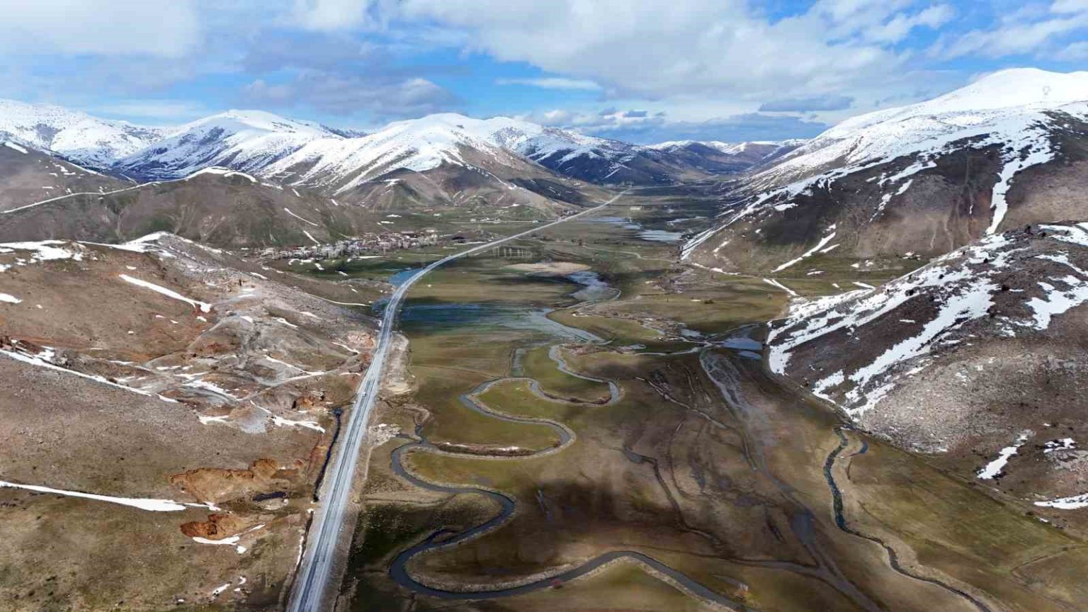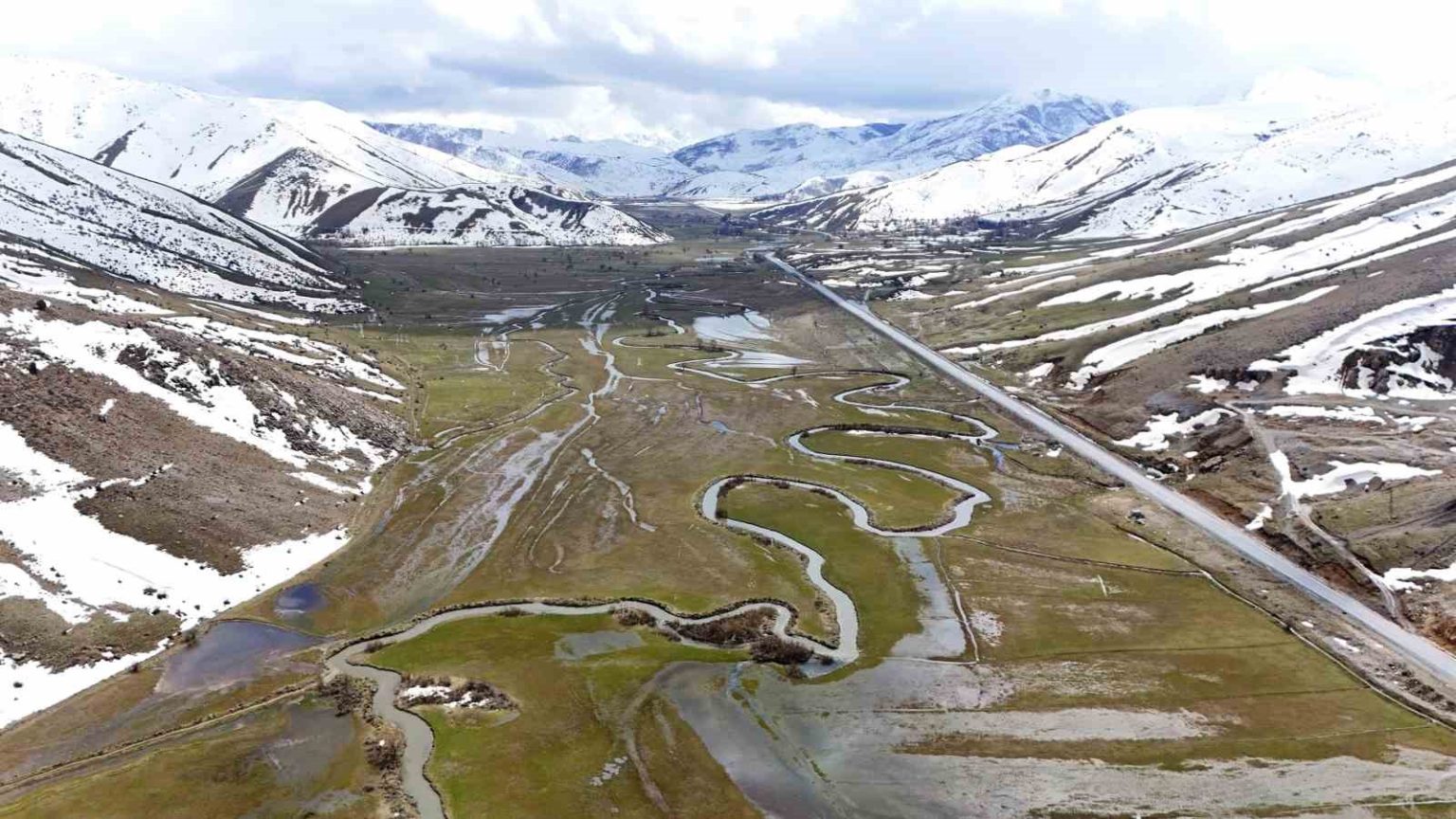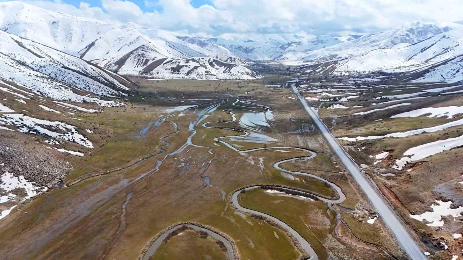 Bitlis’in Tatvan ile Hizan ilçeleri arasında bulunan Güzeldere Vadisi’nde uzayıp giden Güzeldere menderesleri havadan görüntülendi.